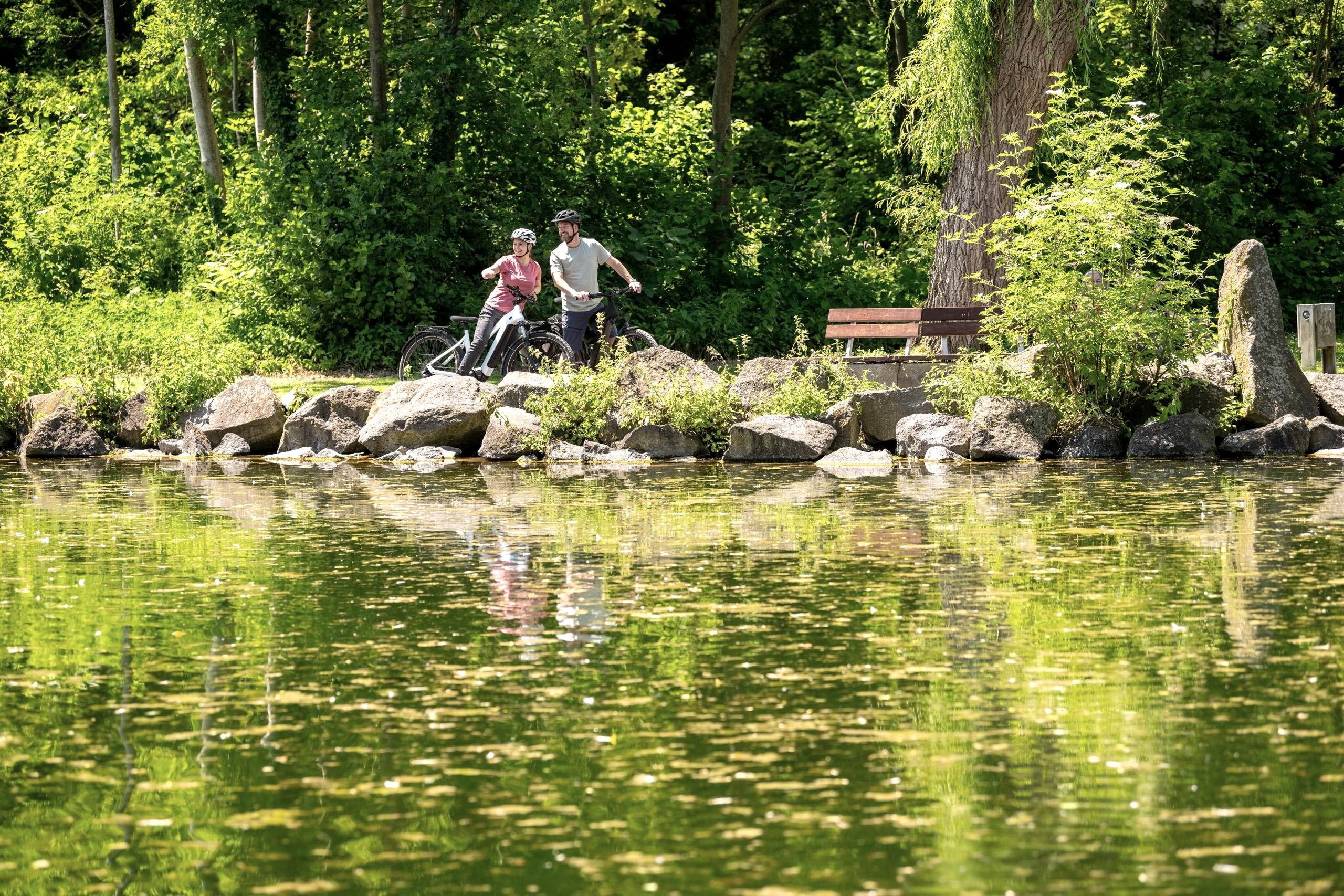 Der idyllische Teich im Nettepark ist der perfekte Platz für eine kleine Rast oder ein Picknick. Neben zahlreichen Enten, ist dort auch eine Nutria-Familie heimisch...