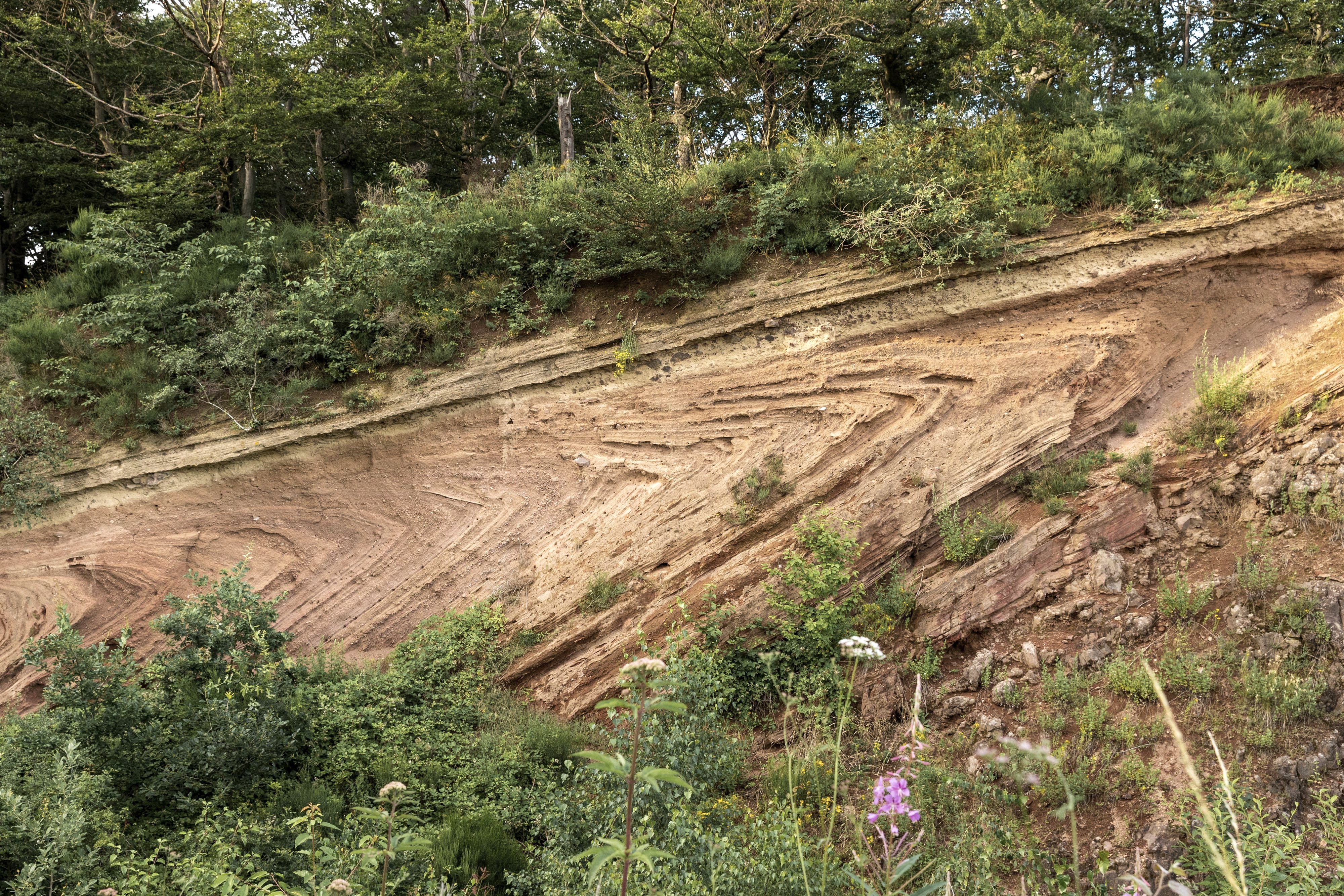 Vor weiterem Abbau braucht sich der Dachsbusch nicht zu fürchten, denn das Gebiet steht heute unter Naturschutz. Folgen Sie dem beschilderten Weg rechts hinauf zur Gleitfalte, wo Sie weitere Informationen erwarten.