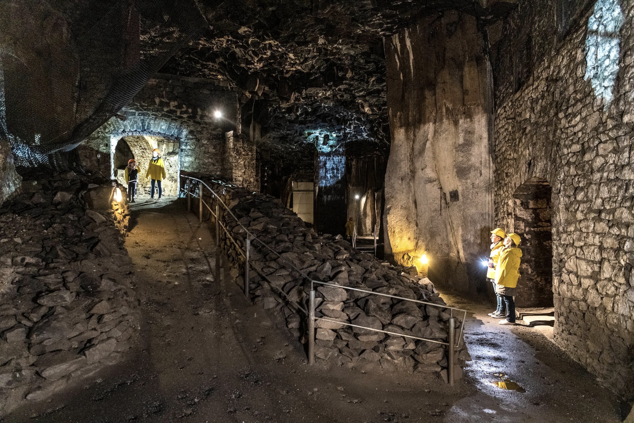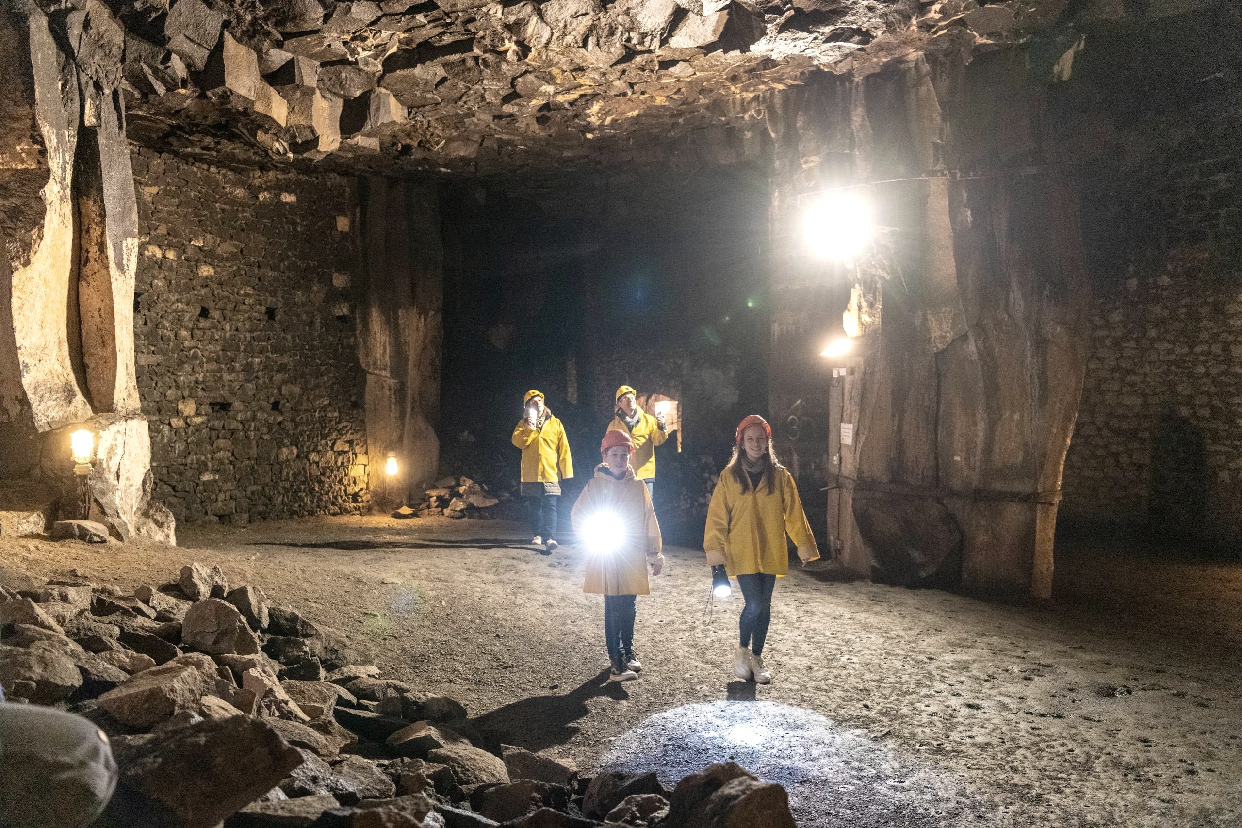 Als die Vulkane in der Eifel ausbrachen, floss auch ein Lavastrom in Richtung Mendig. Die dadurch entstandene Basaltlava wurde von den Mendigern später abgebaut und war ein wichtiger Broterwerb – denn die Basaltlava war ein kostbares Baumaterial. Mächtige Säulen, die beim jahrhundertelangen Basalt- und Lavaabbau stehengelassen wurden, stützen die gigantischen Lavakeller.