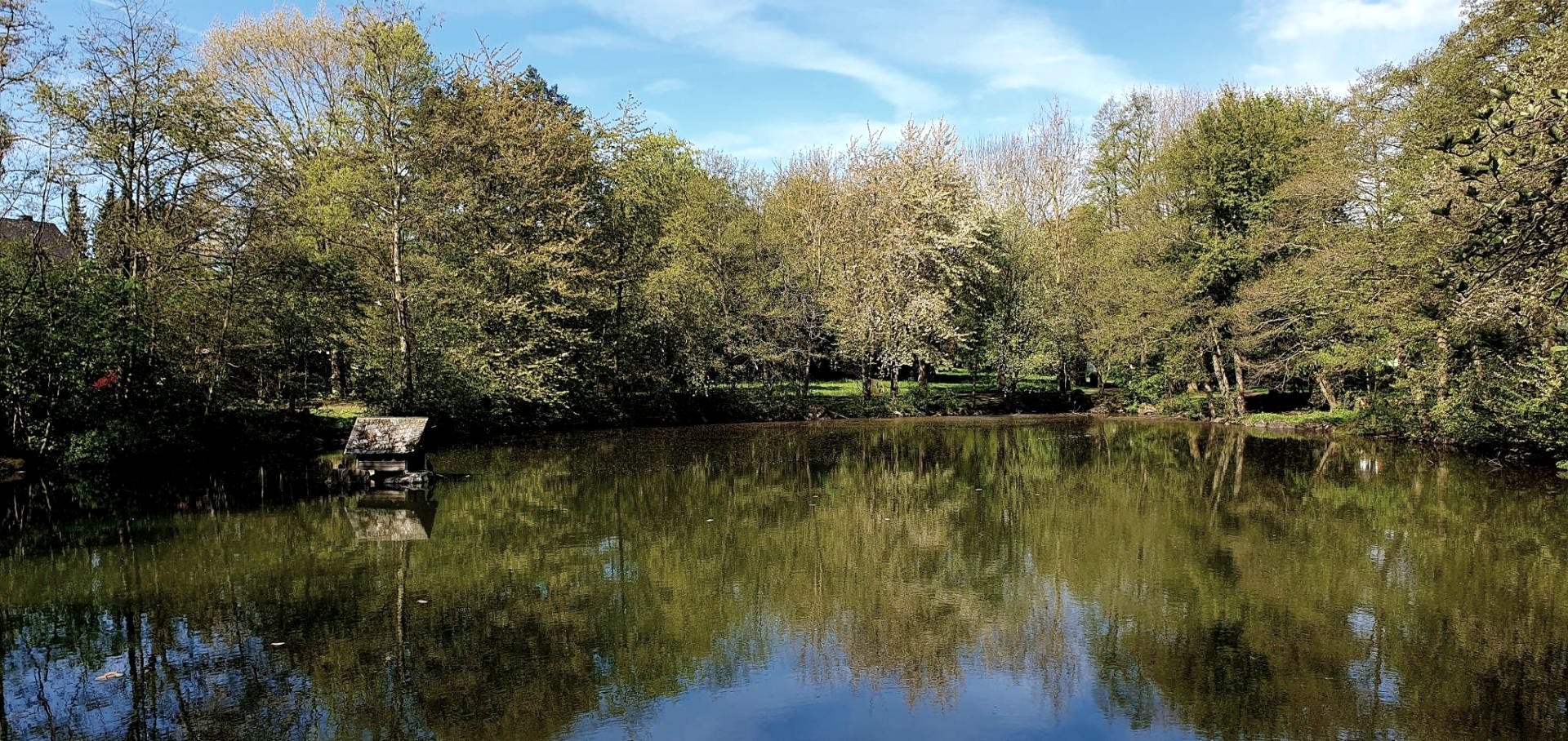 Die Freizeitanlage entlang des malerischen Kellbachs führt zum idyllischen Entenweiher in Obermendig.