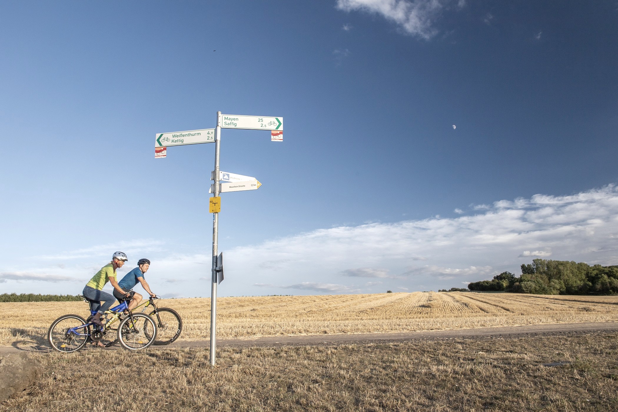Führung meistens auf eigenen Rad- bzw. Wirtschaftswegen. zum Teil auf Ortsstraßen, Anstieg Richtung Eifel.