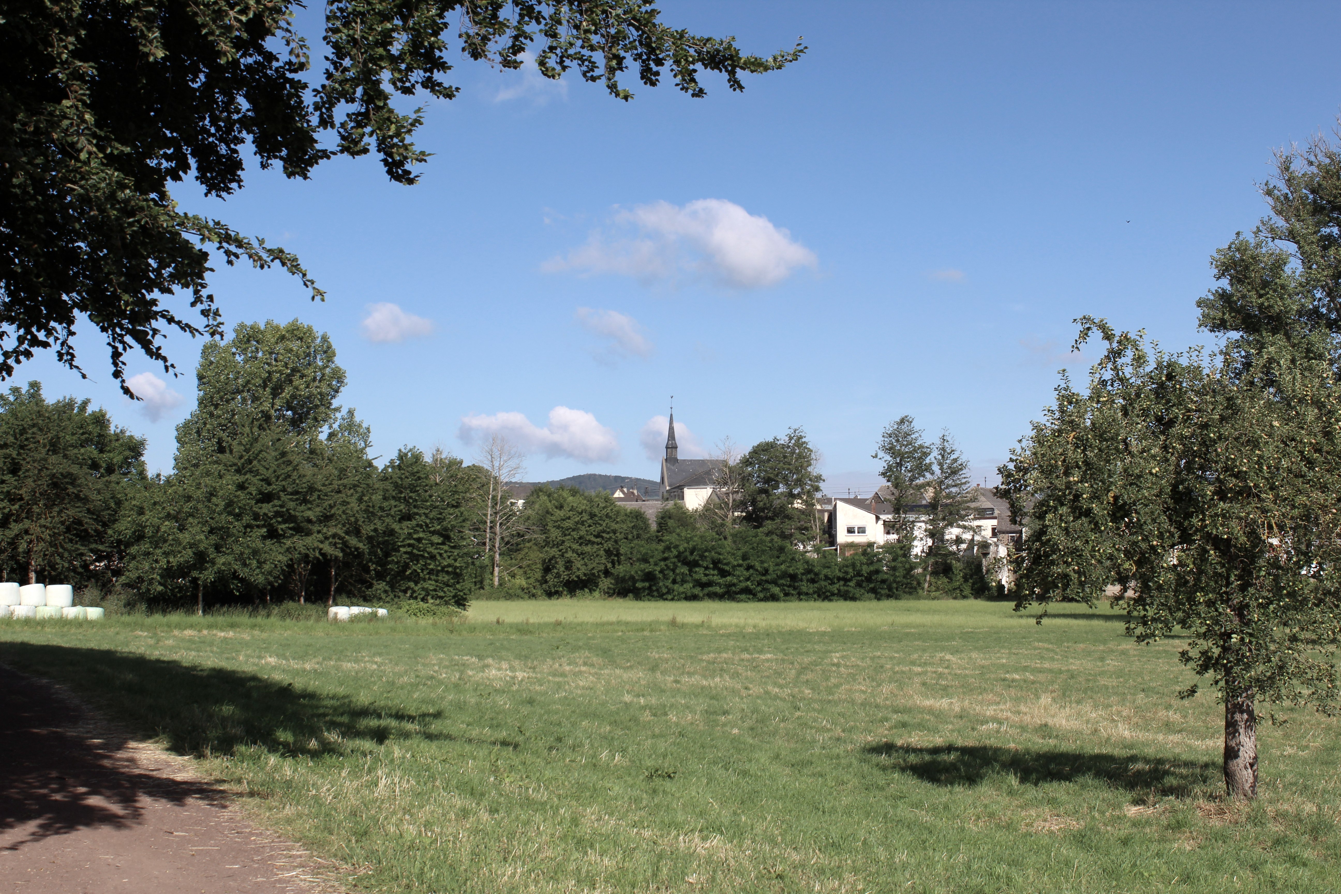 Vom Parkplatz geht es links die Hauptstraße hinunter. Anschließend biegen Sie zweimal rechts ab, erst in die Straße „In der Hohl“ und dann in den Hahnenwiesenweg. Sie laufen entlang des „Krufter Bachs“ bis Sie links eine Fußgängerbrücke erblicken, die Sie nehmen. Auf der anderen Seite angekommen folgen Sie der Straße bis rechts ein kleiner Pfad einmündet. Folgen Sie dem Pfad entlang des „Krufter Bachs“, wobei Sie eine Straße überqueren. Am Ende des Parks mit kleinem Fußballplatz halten Sie sich links und biegen Sie dann rechts auf den Plaidter Weg ab. Folgen Sie diesem bis er in die Kondstraße übergeht, wobei Sie abzweigenden Straßen keine Beachtung schenken. Weiter die Kondstraße geradeaus gelangen Sie an die Kreuzung, wo linkerhand die Wingertskapelle steht. Dort folgen Sie der Straße „Wingertsberg“ links hoch auf den „Korret“. Oben angekommen, erblicken Sie etwas oberhalb die Johanneskapelle. Folgen Sie dem Weg weiter geradeaus und halten Sie sich bei der nächsten Möglichkeit rechts. Bei einem herrlichen Ausblick führt der Weg weiter um den Korret herum bis Sie zur Abzweigung Richtung Kretz kommen, der Sie rechs runter in den Ort folgen. Vorbei an der Firma Zöller, passieren Sie anschließend eine Brücke bevor Sie wieder auf die Straße „In der Hohl“ stoßen. Folgen Sie dieser ein Stück und biegen Sie dann links in die Hauptstraße ab, der Sie geradeaus zurück zur Kirche folgen.