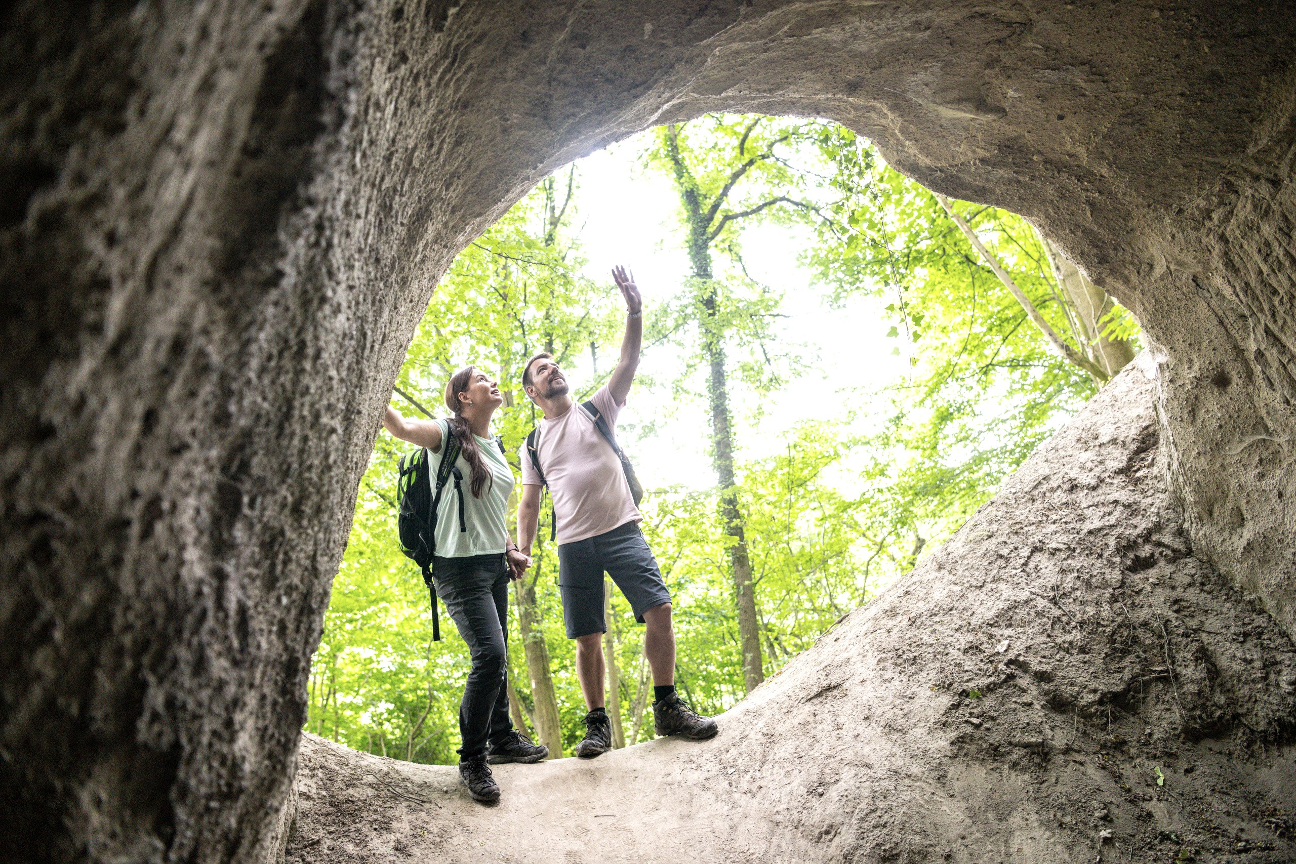 Eine detaillierte Beschreibung mit Hintergrundinformationen finden Sie auch auf der Website unseres Vulkanparkführers Konrad Friedgen: https://profirouten.de/eifel/geopfad-route-u-trasshoehlenweg