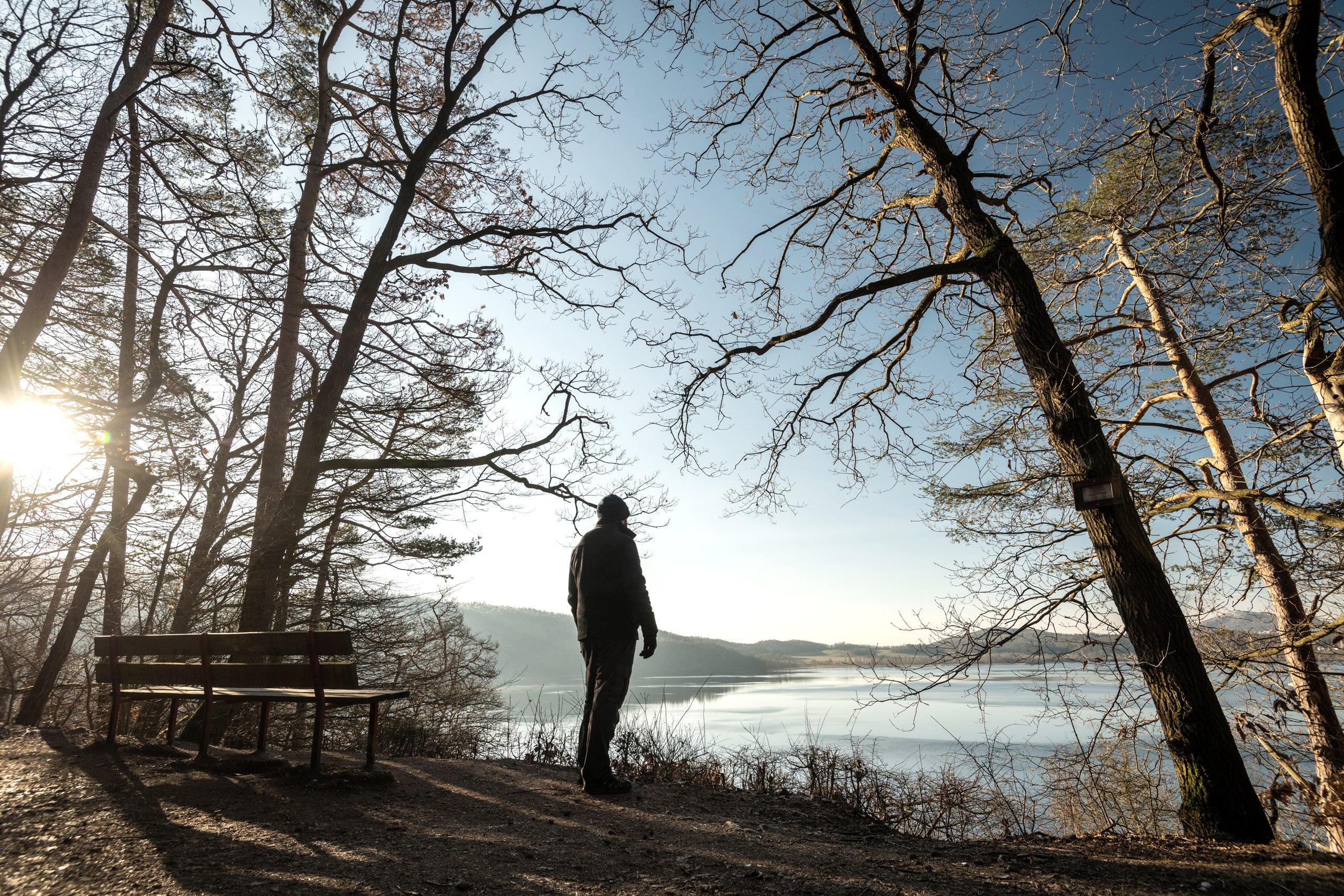 Nach einem kurzen Anstieg erreicht man die Hermann-Hütte. Hier bietet sich ein guter Rastplatz mit weiter Aussicht über die Pellenz. Der Pfad führt anschließend hinunter zum Rand des Eppelsberger Tagebaus, wo sich geologische Schichten deutlich ablesen lassen. Ein Mischwaldabschnitt bringt angenehme Abkühlung und leitet zum Krufter Waldsee – ein ruhiger Ort mit Rastmöglichkeiten.