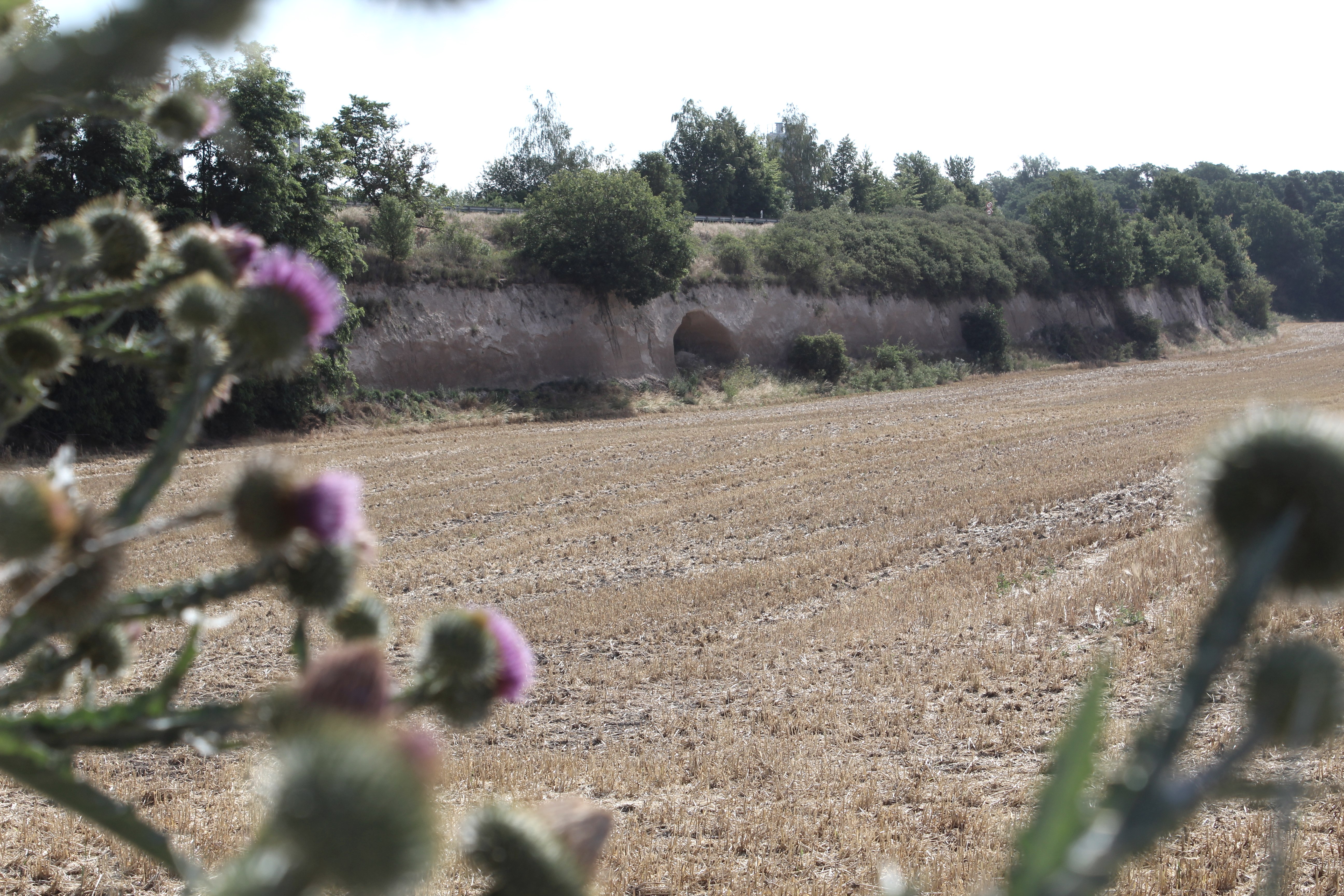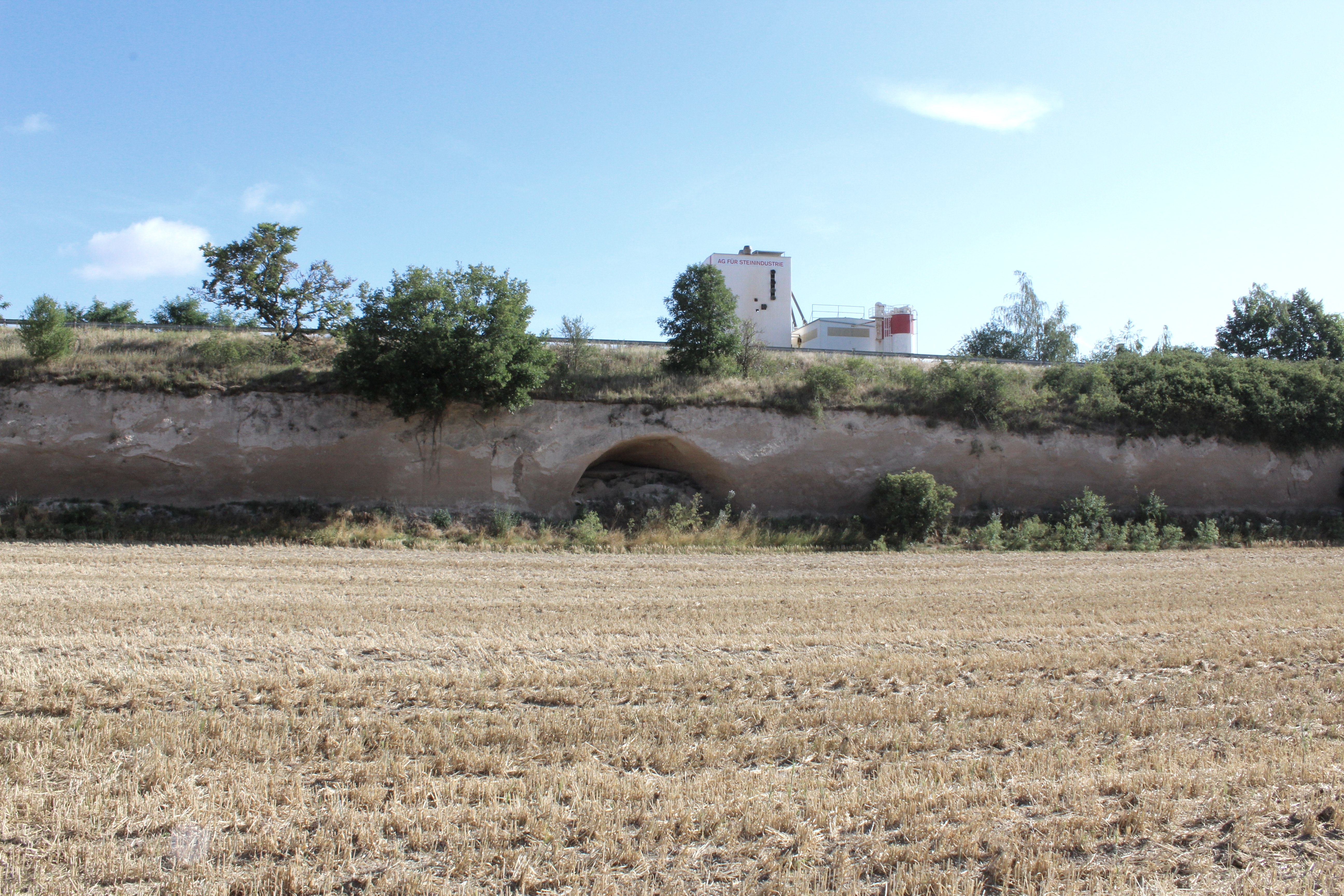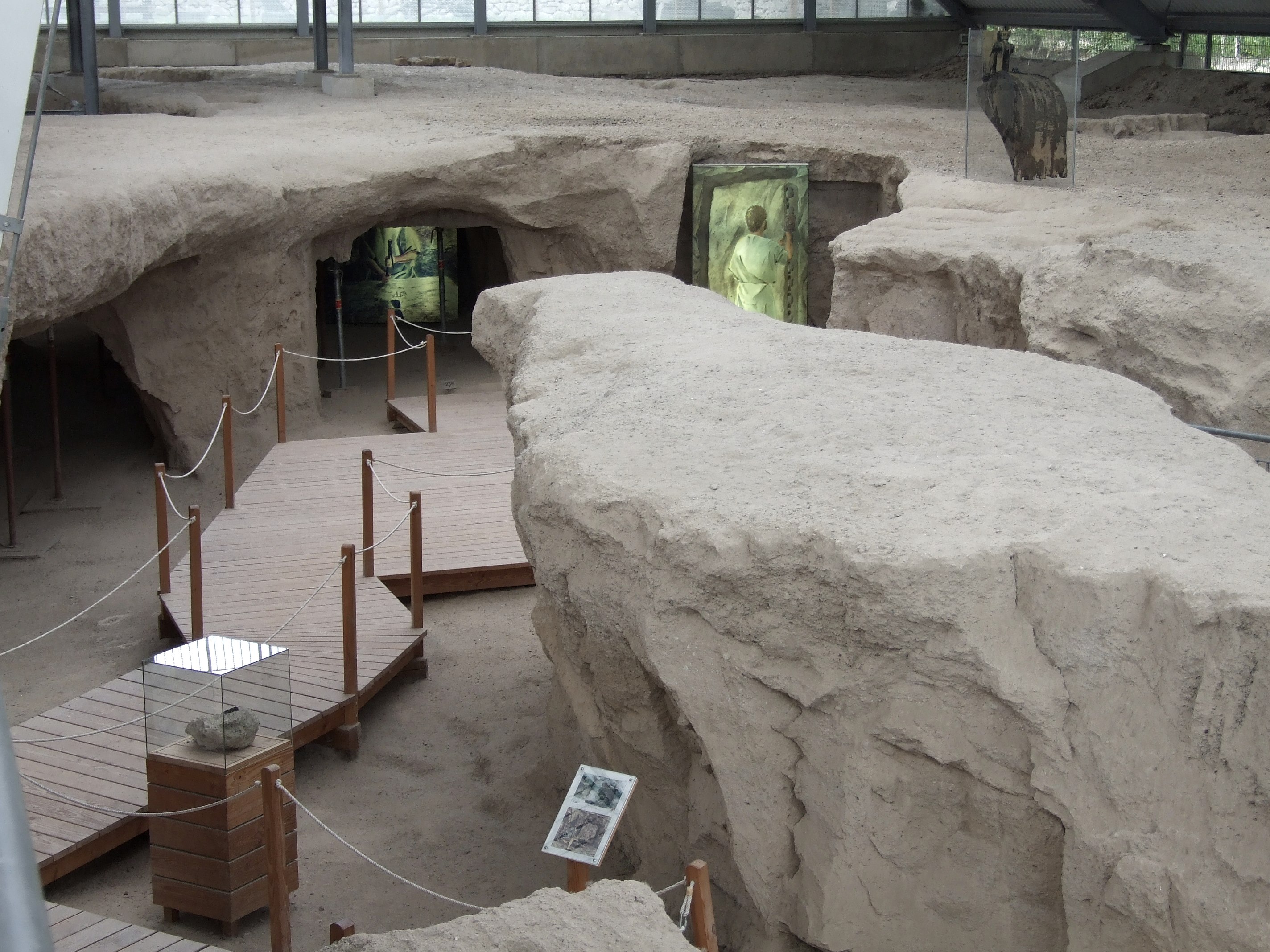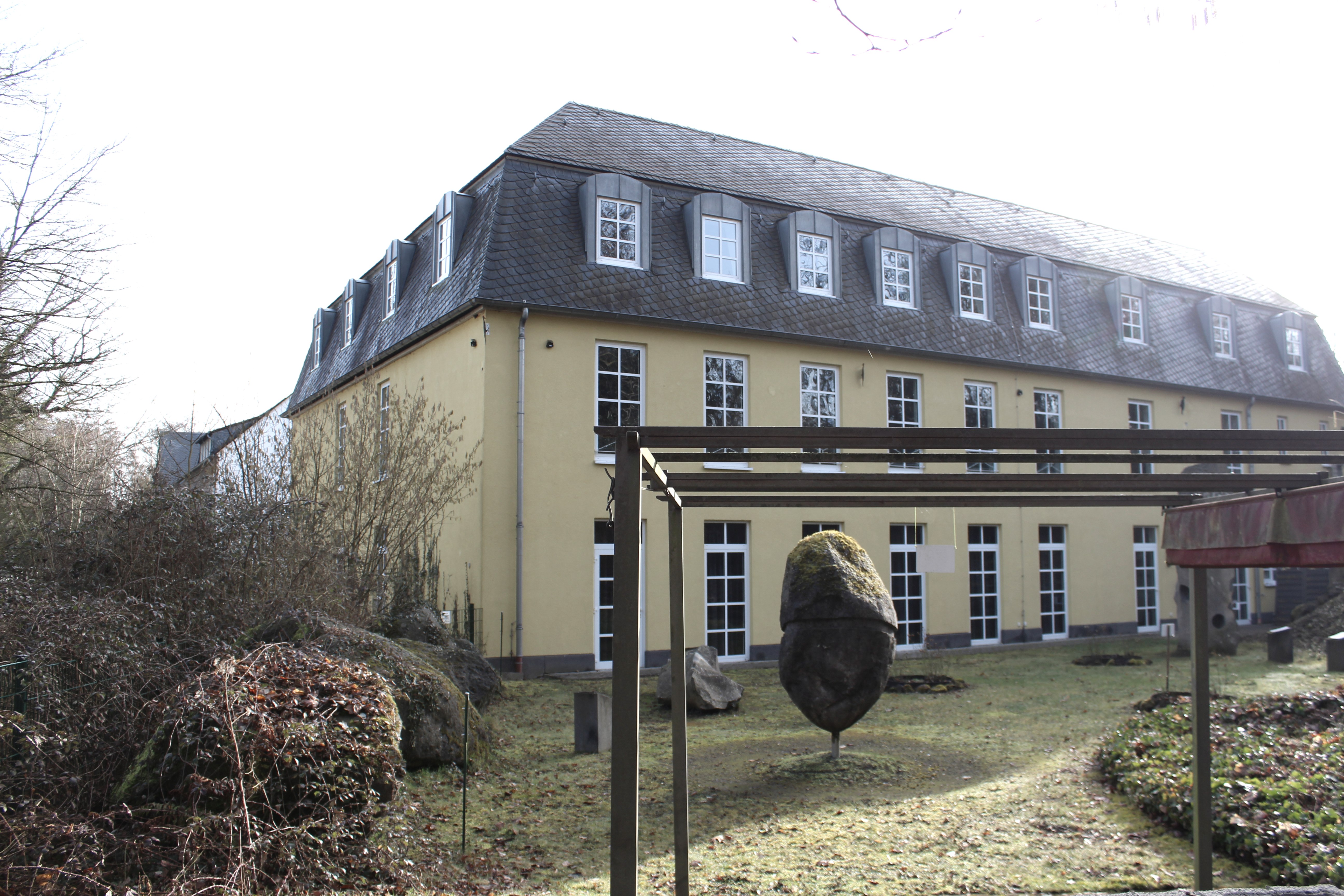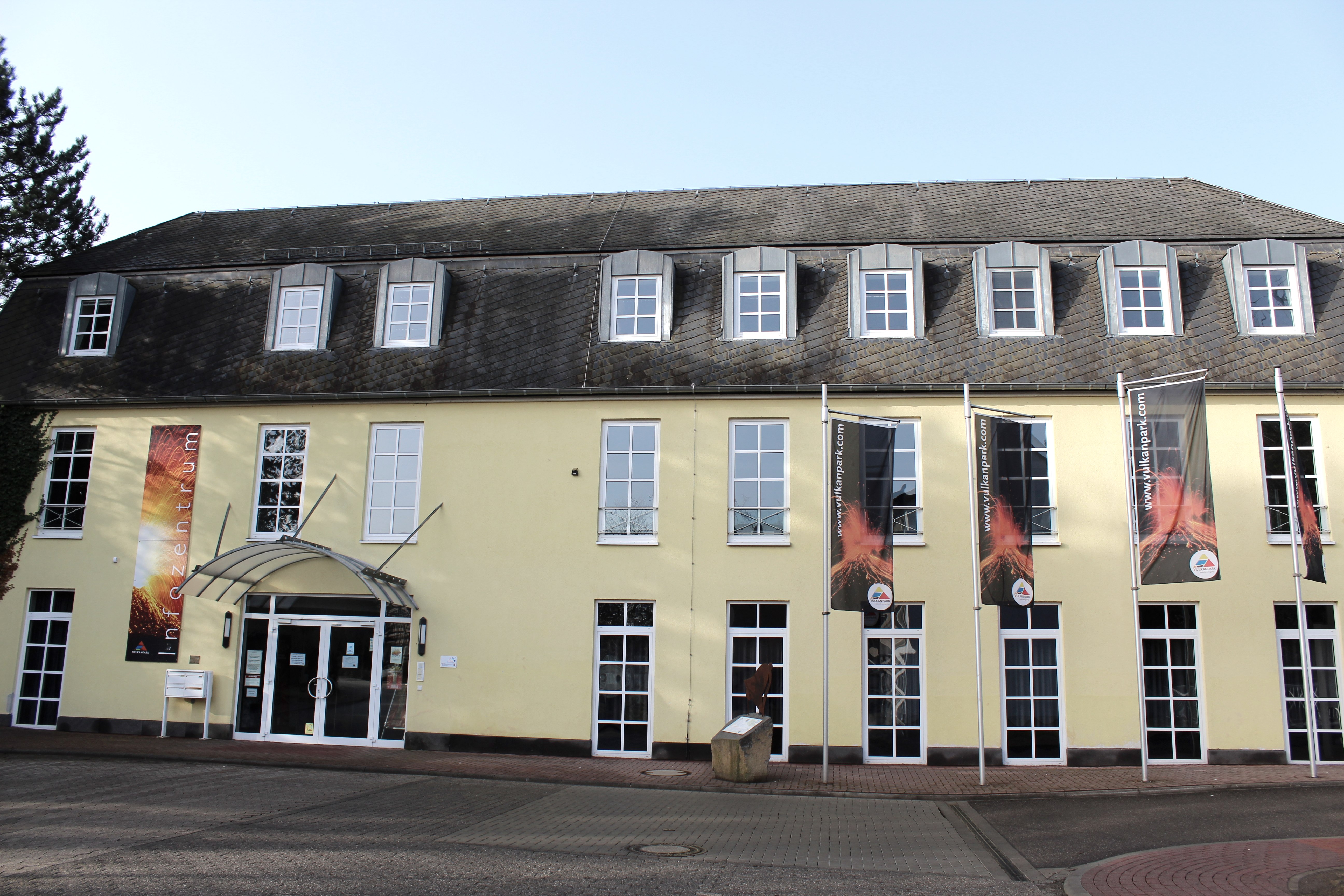 Folgen Sie der Bahnhofsstraße ein kleines Stück rechts hoch und biegen Sie anschließend gegenüber der Volksbank in die Friedhofsstraße ein. Diese führt Sie erst am Friedhof und dann am Rathaus der Verbandsgemeinde Pellenz vorbei. Nun erblicken Sie einen Sportplatz sowie den „Pommerhof“, ein alter Gutshof mit langer Historie. Dort überqueren Sie die Landstraße und folgen dem Weg immer geradeaus bis Sie auf eine größere Straße stoßen, der Sie ca. 20 Meter linksherum folgen, um dann direkt wieder links in einen Feldweg einzubiegen. An der folgenden Weggabelung halten Sie sich rechts. Der Weg führt Sie vorbei am Landschaftsdenkmal „Krufter Bachtal“. Hier sind noch alte Stollen im Tuff sichtbar, die für den Abbau des Vulkangesteins angelegt wurden. Immer weiter geradeaus gelangen Sie nun ins das kleine Örtchen Kretz. Hier folgen Sie der Hauptstraße und anschließend ein Stückchen der Straße „In der Hohl“ hinab bis Sie rechterhand den „Hahnenwiesenweg“ erblicken. Entlang des „Krufter Baches“ führt dieser Sie zu einer Unterführung, die Sie zur Mühlenstraße bringt. Dieser folgen Sie, hinweg über die Meurinstraße und entlang einer kleinen Wiese zum Parkplatz des Römerberwerks Meurin. Von hier aus führt ein Fußweg Weg vorbei an einer idyllischen Angelkaul zum beeindruckenden Bergwerk mit seinen begehbaren Stollen und antiken Technikgeräten.