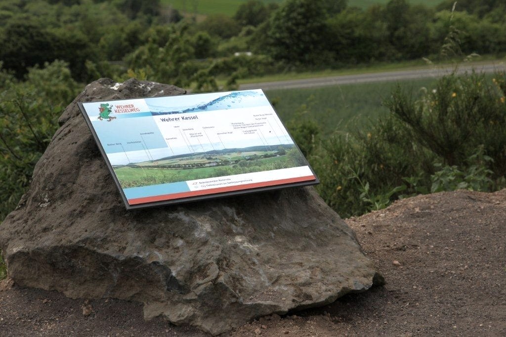 Wem die Strecke von 4,5 km über den kleinen Rundweg zu kurz ist, der kann die große Runde am Naturschutzgebiet Dachsbusch mit der eiszeitlichen Gleitfalte vorbei nehmen. Ein herrlicher Überblick über den gesamten Wehrer Kessel entschädigt für windabhängige Lärmbeeinträchtigungen durch die Autobahn.