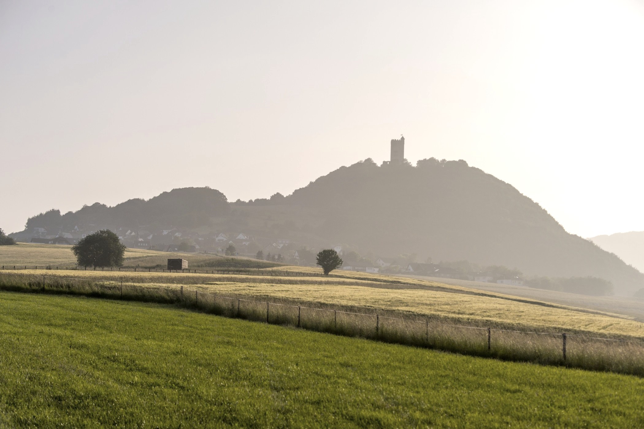 „Da ist ja der Silberreiher“, freut sich Laachus und läuft am idyllischen Ufer des über 5 Hektar großen Rodder Maars entlang. Ihn will er um eine Antwort auf seine Frage bitten. Aber noch bevor er den in der Sonne glänzenden Vogel erreicht, hebt dieser ab und fliegt davon. Während Laachus ihm enttäuscht nachschaut fällt sein Blick auf eine eindrucksvolle, mittelalterliche Burg, die hoch auf einem Berg thront. „Eine echte Burg!“, ruft Laachus begeistert, „Da muss ich hin!“ Schon bald steht er vor dem 34 Meter hohen Bergfried der fast 1.000 Jahrealten Burg Olbrück. Flink steigt er die 142 Stufen hinauf. Dann verschlägt ihm der atemberaubende Blick auf die Umgebung die Sprache. Eine Weile genießt Laachus die Aussicht und langsam wird es dunkel. Plötzlich hört er ein entsetzliches Heulen, das ihm fürchterliche Angst einjagt. Schnell stürmt er die Stufen herab bis zum Fuße des Bergs. Das Heulen wird immer lauter. Ängstlich versteckt sich Laachus in einem Busch. Dann entdeckt er die Ursache für die markerschütternden Laute: Ein schwarzer Fuchs umkreist den Burgberg. Dabei heult er herzzerreißend: „Ich bin die schwarze Seele des Dieners Benno. Ich habe in der Abwesenheit des Burggrafen das Volk gequält. Bürger von Niederdürenbach haben mich überlistet und das Volk befreit. Ich wurde gehängt und zur Strafe meiner Untaten heule ich zu jeder mitternächtlichen Stunde.“– „ Das ist ja schrecklich!“, rutscht es Laachus in seinem Versteck heraus. Das Heulen verstummt, der Fuchs wittert Laachus im Gebüsch und fragt: „Wer bist du?“ Laachus stammelt ängstlich: „Ich will doch nur wissen, warum ich schwimmen kann.“ – „Dies ist nicht der Ort, an dem du eine Antwort findest“, krächzt Benno mit heiserer Stimme, „aber mit Steinen kennt sich hier in der Gegend niemand besser aus, als die Tuffsteinbrüchein Weibern“, raunt er, bevor er wieder zu heulen beginnt. Und so macht sich Laachus weiter auf den Weg durch die Sagenhafte Vulkanregion LAACHER SEE, um herauszufinden, warum er schwimmen kann.