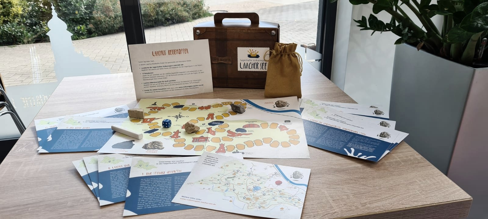 Mit dabei, der Laachus Koffer mit einem Abenteuerspiel, der gesamten Laachus-Geschichte, Infokarten uvm., den Sie bei der Tourist-Info Maria Laach oder über unseren Online-Shop erhalten.