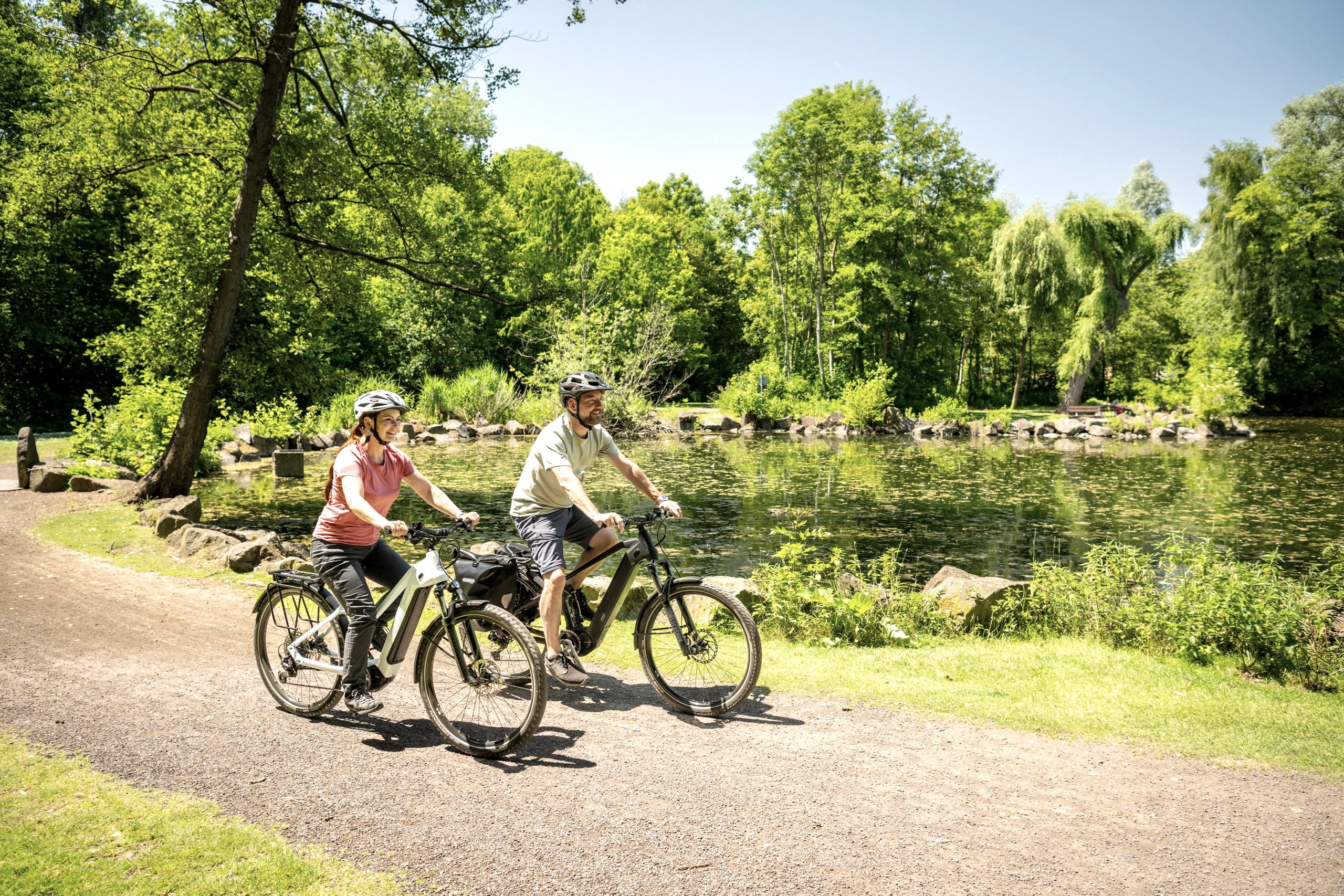 The idyllic pond in Nettepark is the perfect place for a short rest or a picnic. Besides numerous ducks, it is also home to a family of nutria...
