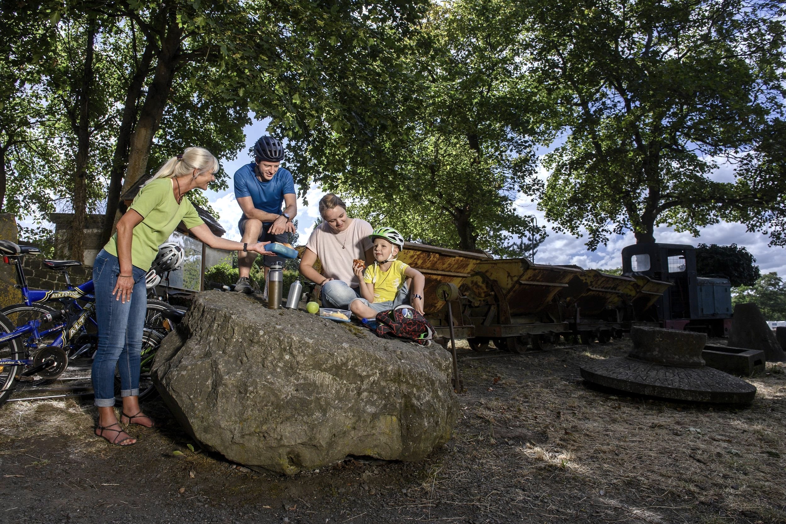 Furthermore, the visitor can learn about old working methods, such as B. the cracking of a basalt stone in the individual work steps, inform.