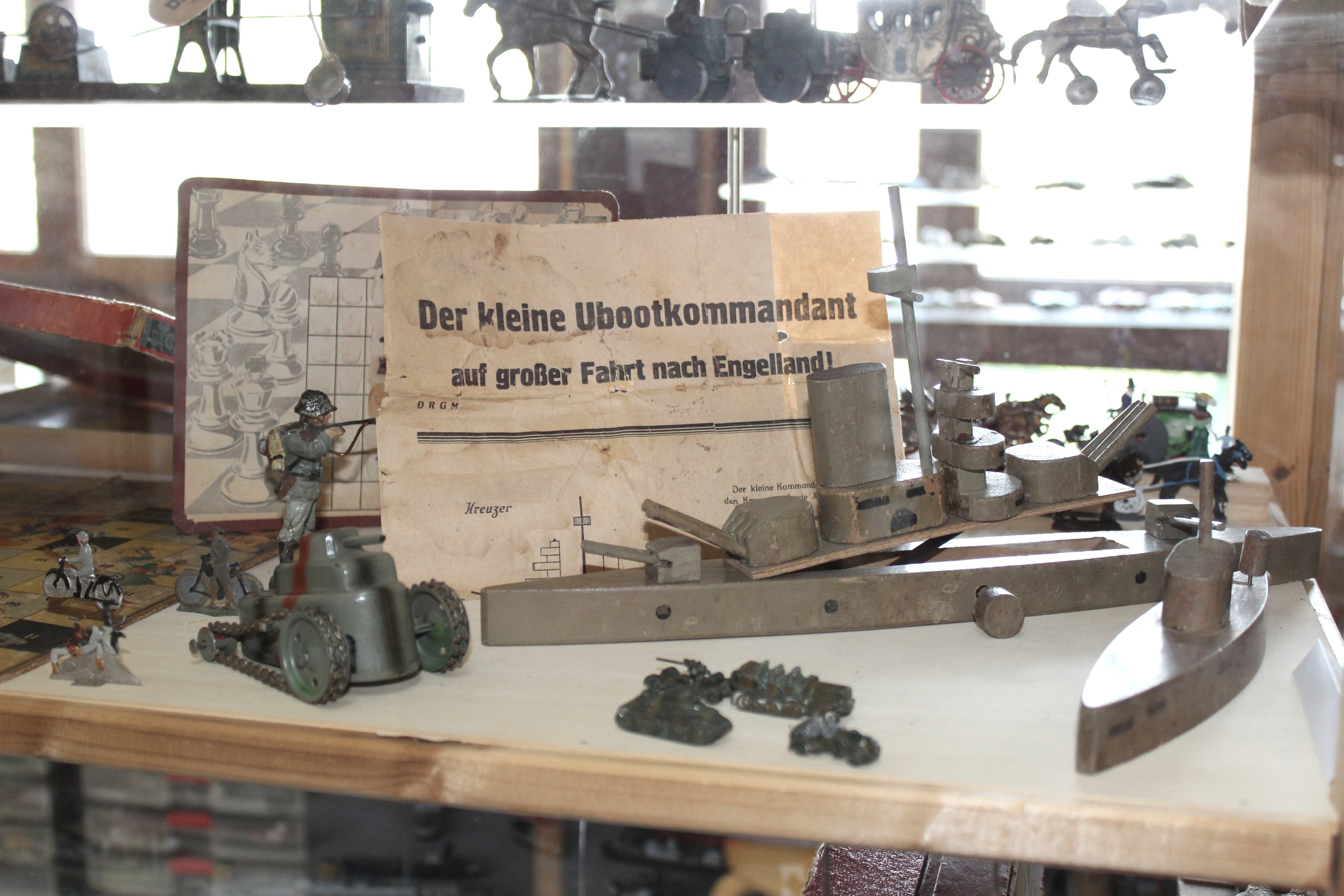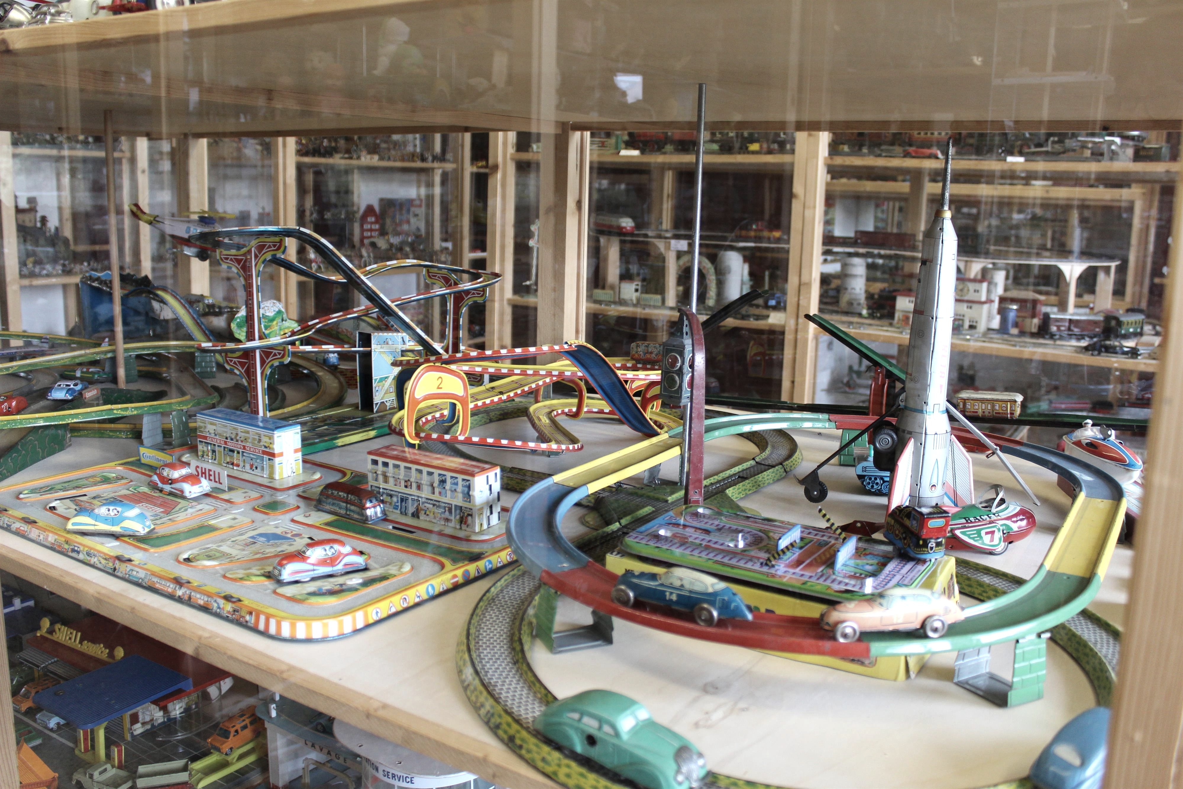 The focus is on mechanical toys and wind-up figures, slot-car models, some of which are self-built, but also knight's castles, knight and Indian figures, animals made of mass and plastic. Railways, highways, tin toys, sewing machines and board games can also be found, so that some visitors feel as if they were back in their childhood.