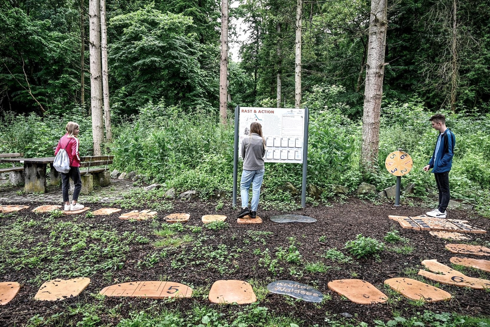 In between, the rest area invites the parents to take a short break while the children can let off steam with a jumping game and go on a journey of discovery through the legendary volcanic region of the Laacher See.