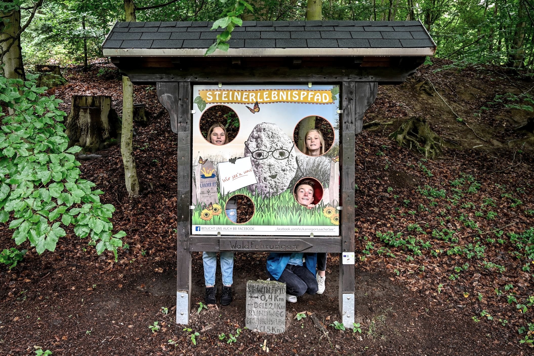 At the end of the stone adventure path, a souvenir photo can be taken together with "Laachus" at a photo point.