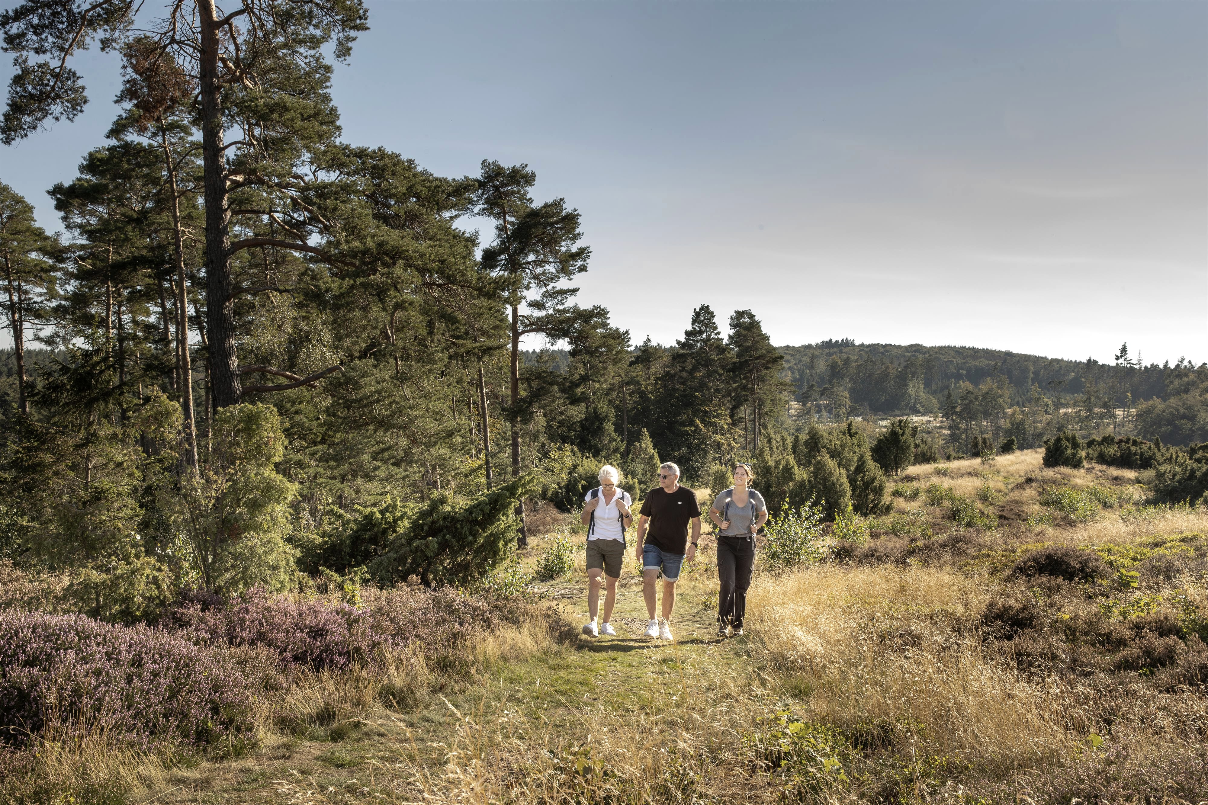 You reach the Schirmau forest estate via the adjoining forest paths. The path leads left behind the forest estate to the Weiselstein viewing tower. A small patch of heather surrounded by junipers blooms at the Weiselstein lookout tower in late summer. The route continues through fields and meadows to the village of Schalkenbach. On the way back to Königsfeld, you will come across more sculptures and old wayside crosses. At the L83, cross Vinxtbach and the road. Turn right along the sidewalk of the L83 and ascend to the left through the Königsfeld development area and back to the starting point.