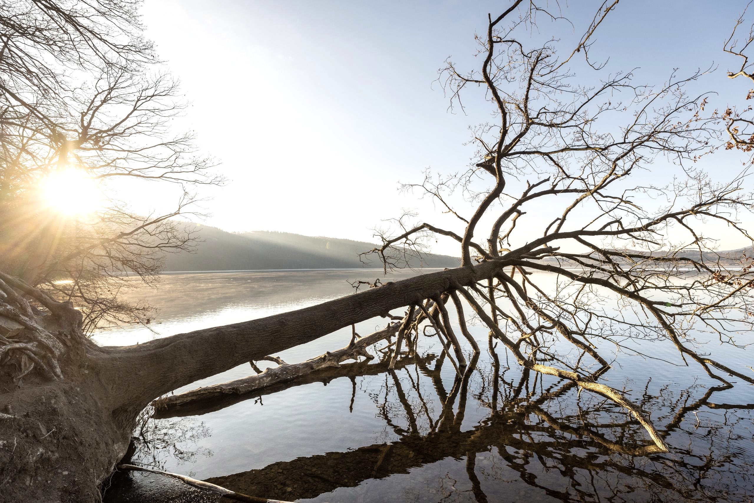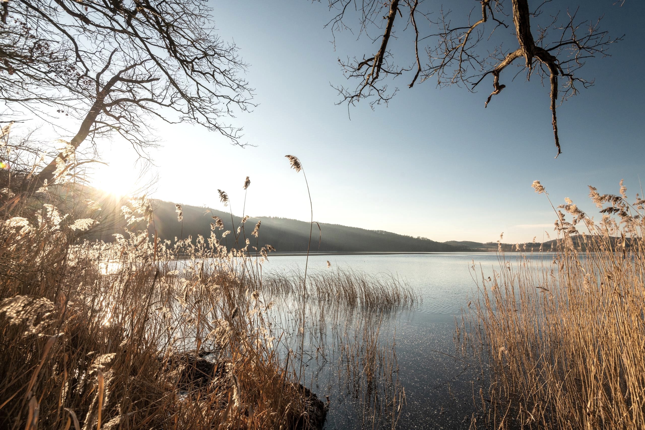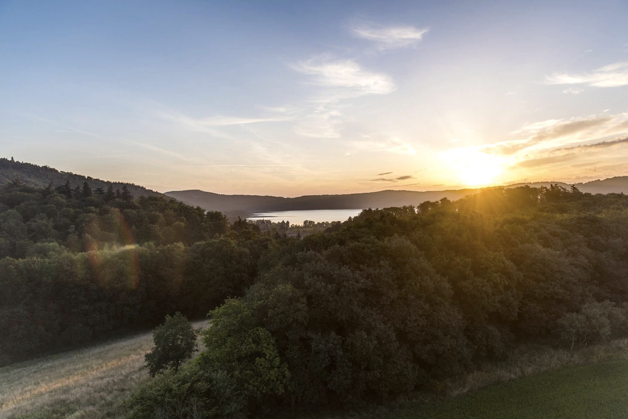 Plus tard, au cours de milliers d'années, l'énorme cratère s'est finalement rempli d'eau et le lac Laach s'est formé. Avec une superficie d'environ 3,3 kilomètres carrés et une profondeur d'eau de plus de 50 mètres, c'est le plus grand lac de Rhénanie-Palatinat et une destination populaire pour les baigneurs, les campeurs et les personnes à la recherche de loisirs, ainsi que pour les visiteurs de l'abbaye bénédictine voisine de Maria Laach, dont les propriétés comprennent le Laacher See. En outre, des oiseaux aquatiques rares peuvent être observés chaque année dans les zones de rivage couvertes de roseaux, qui sont parsemées de nénuphars.