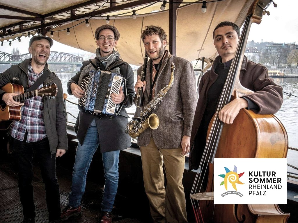 Un voyage captivant à travers la musique folklorique d'Europe de l'Est et des Balkans. Klezmer, musique gitane, folklore de Moravie et de Slovaquie se fondent en un puissant et vibrant tapis sonore. Avec accordéon, guitare, contrebasse, clarinette, violon et chant, ils jouent comme la musique d'il y a 100 ans lors des mariages et des fêtes – pleine de passion, d'humour et de dévouement.