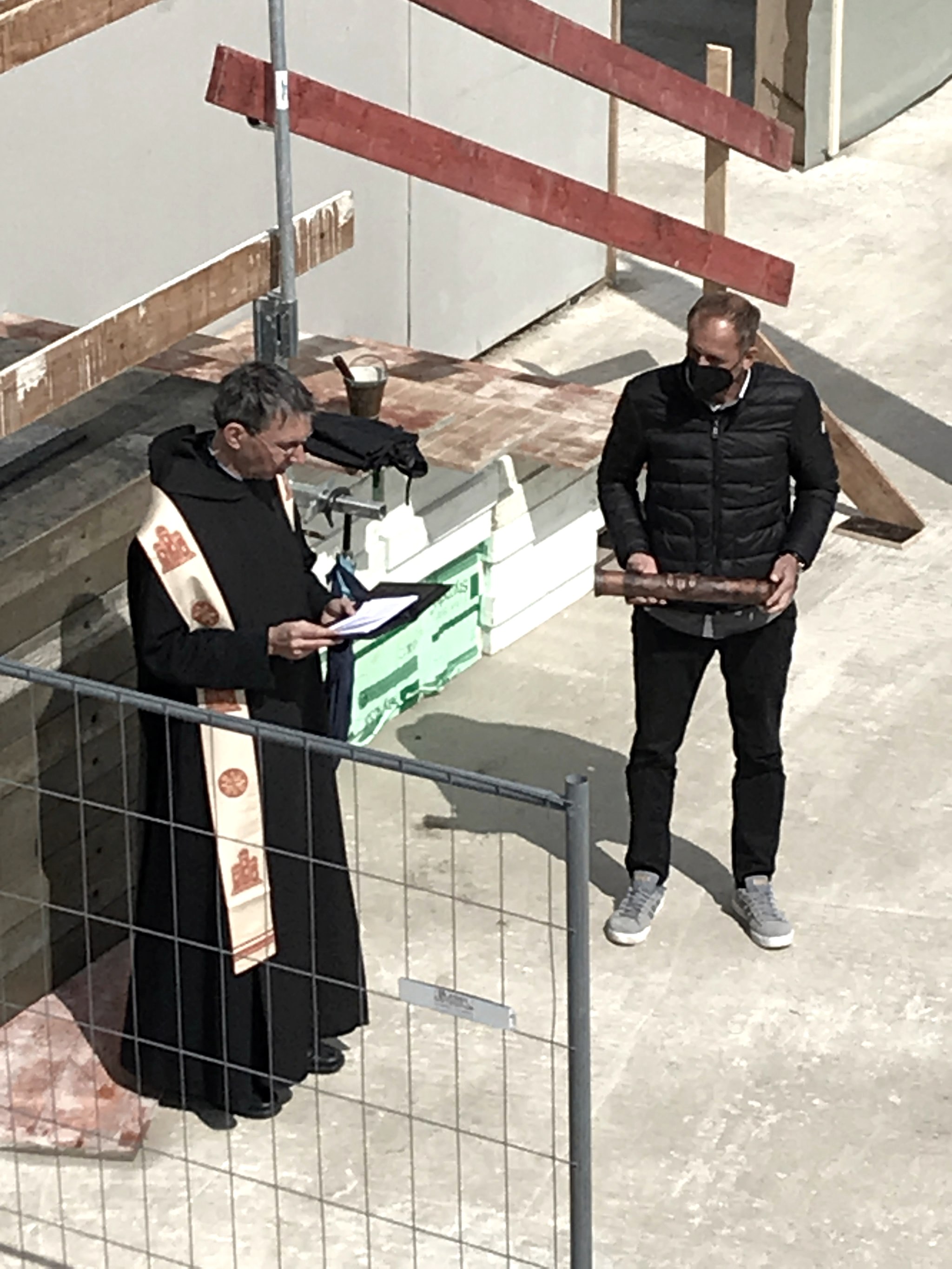 Pater Petrus Nowack OSB, Prior-Administrator der Benediktinerabtei, segnete das Gebäude. Er dankte seinen Mitbrüdern, den Architekten und Bau-firmen, den Banken sowie auch Philipp Lohse, dem Geschäftsführer der Abtei, der im Sinne einer gelingenden Zusammenarbeit mit den Architekten für einen zügigen Projektfortschritt sorge. Baubeginn war im September 2020.