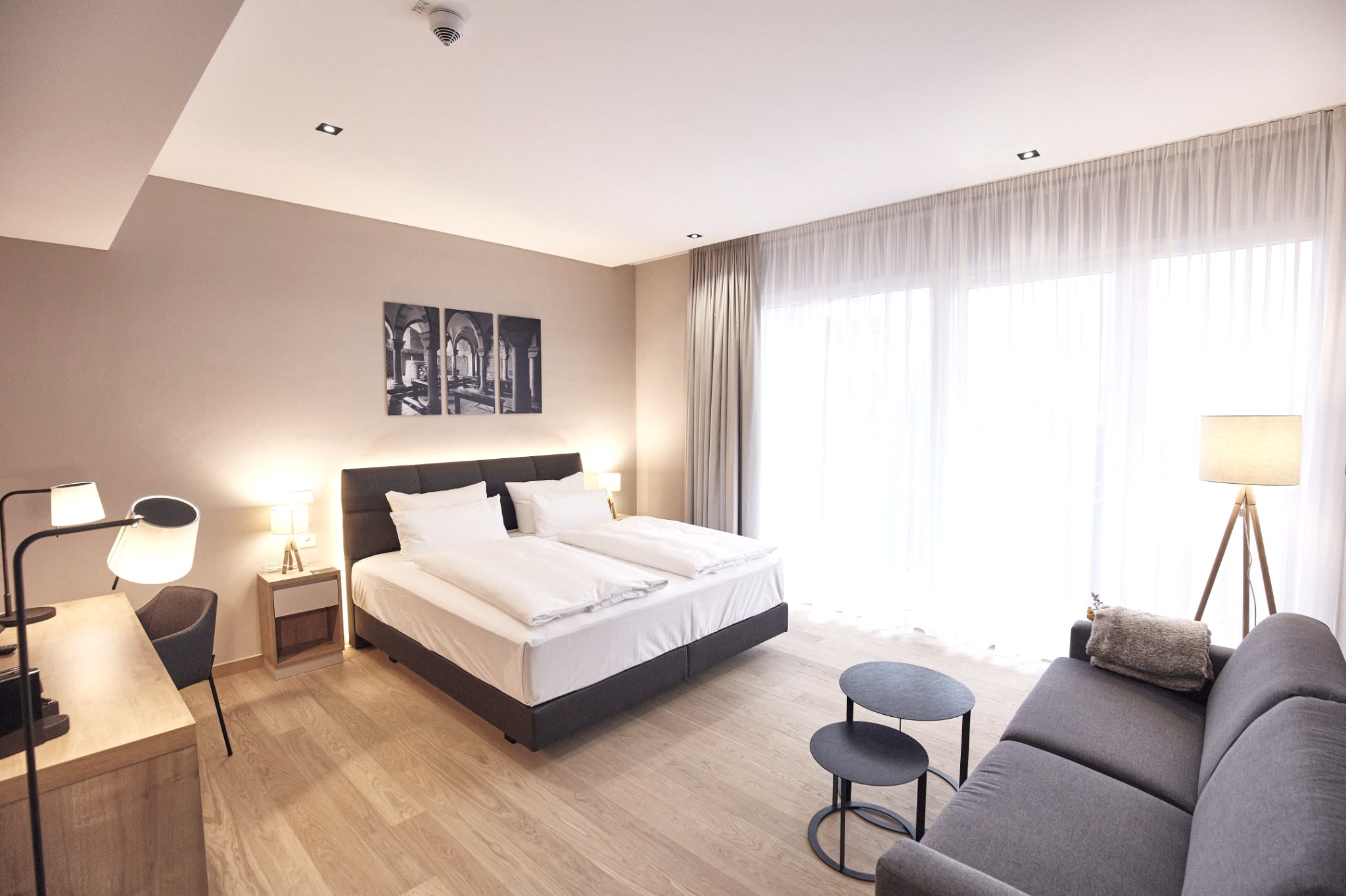 Das Seehotel verfügt nun über frisch renovierte, modern gestaltete Zimmer. Dass das Seehotel ein echter Klosterbetrieb ist, zeigt sich an vielen Stellen. Nicht nur, dass Betriebe der Abtei hier ihr meisterhaftes Können eingebracht haben, auch zeitgenössische Künstlerbrüder sind hier versammelt.