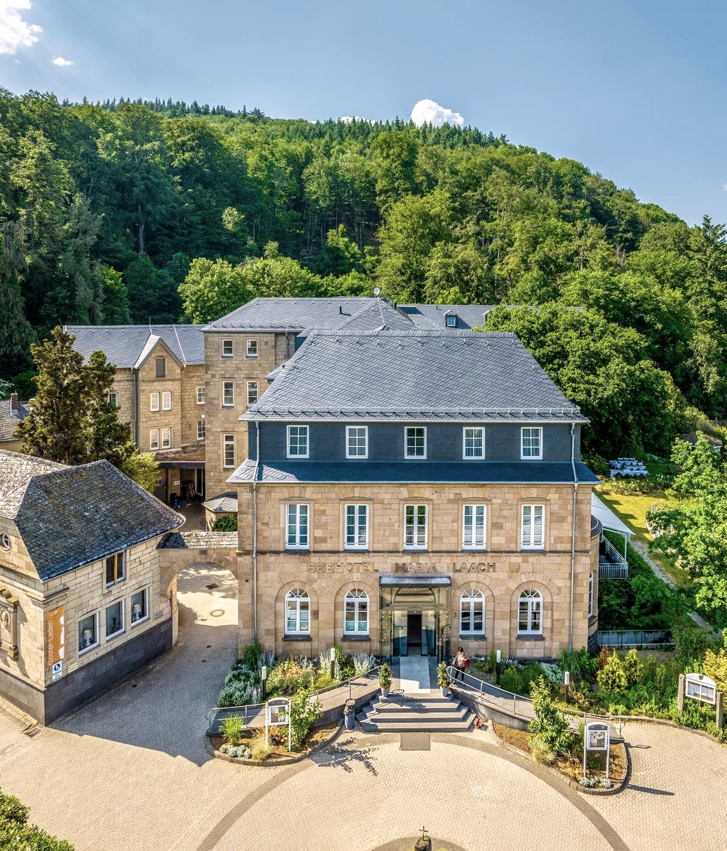 Direkt am Ufer des Laacher Sees gelegen, ist das 4S-Superior Hotel Teil der traditionsreichen Benediktinerabtei. Nach der Renovierung im Jahr 2021 verbinden 55 komfortable Zimmer – viele davon mit Blick auf den See – das zeitgenössische Hotelerlebnis mit der besonderen Atmosphäre des Klosters.