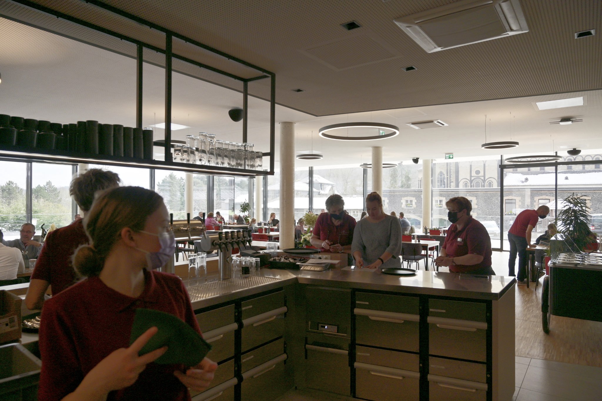 Nach knapp zwei Jahren Bauzeit hat nun die neue Klostergaststätte Maria Laach ihre Pforten geöffnet. Die Klostergaststätte befindet sich zwischen Seehotel und Klostergärtnerei. Die Benediktinerabtei hat sich mit dem Bau der Gaststätte buchstäblich weiter für die Besucher geöffnet: Der Klausurmauer wurde für einen barrierefreien Zugang zu Gärtnerei und Gaststätte ein Stück entnommen und gibt zudem einen ganz neuen Blick auf die Abteikir-che frei. Rund um die neue Klostergaststätte lädt eine neue Platzsituation zum Verweilen ein. Abgerundet wird das Angebot von einem Spielplatz für kleine und größere Kinder. Der Spielplatz ist von der großzügigen Terrasse der Klostergaststätte direkt einsehbar. Ab Ostern ist der Spielplatz geöffnet.