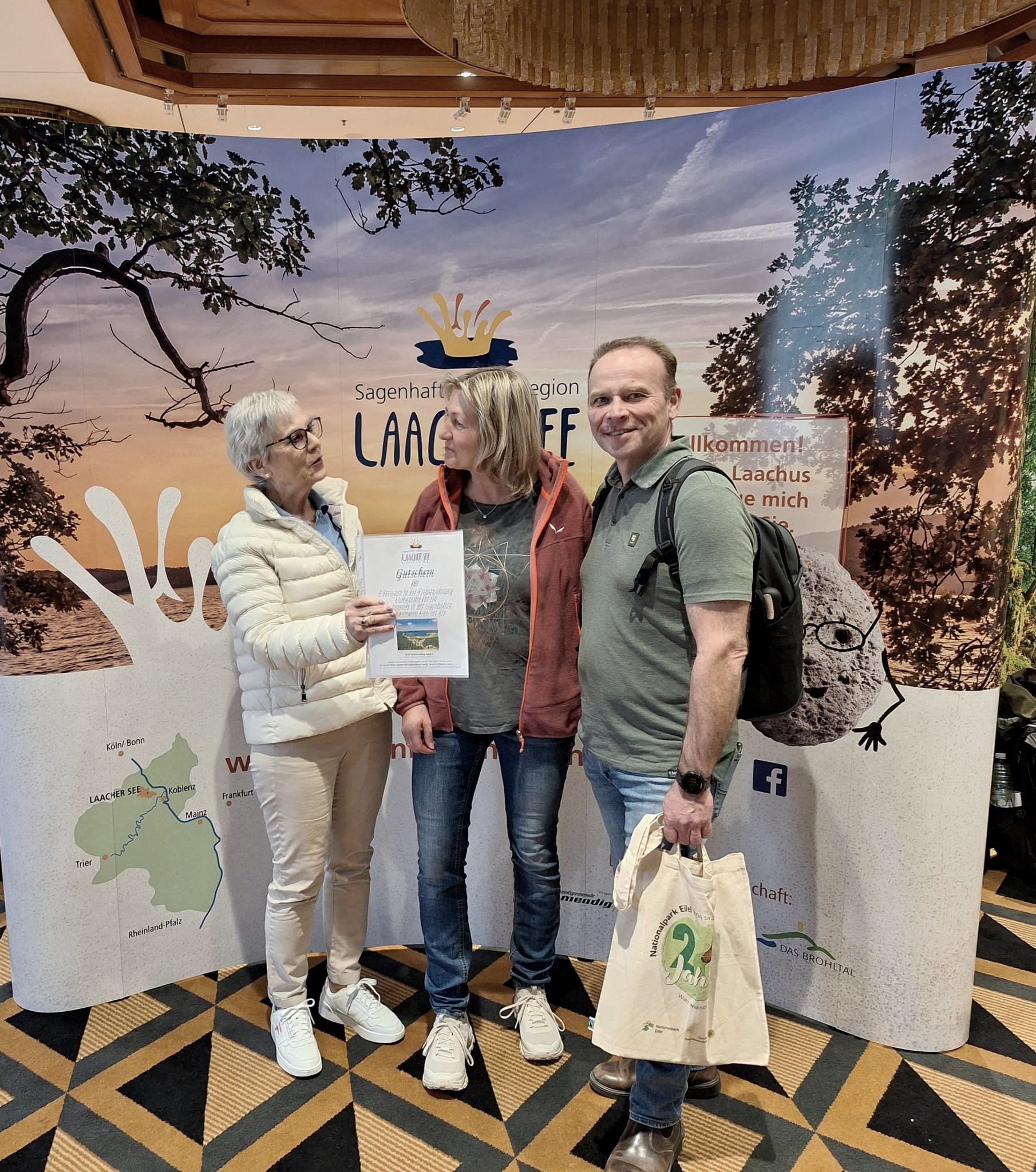 Zum Ende der Messe fand die traditionelle Tombola statt, wozu die Aussteller attraktive Gutscheine und Sachspenden zur Verfügung stellen. Über den Beitrag der Vulkanregion Laacher See, einen Reisegutschein für ein Wochenende in der Region, freute sich das Ehepaar Richarz aus Königswinter ganz besonders!