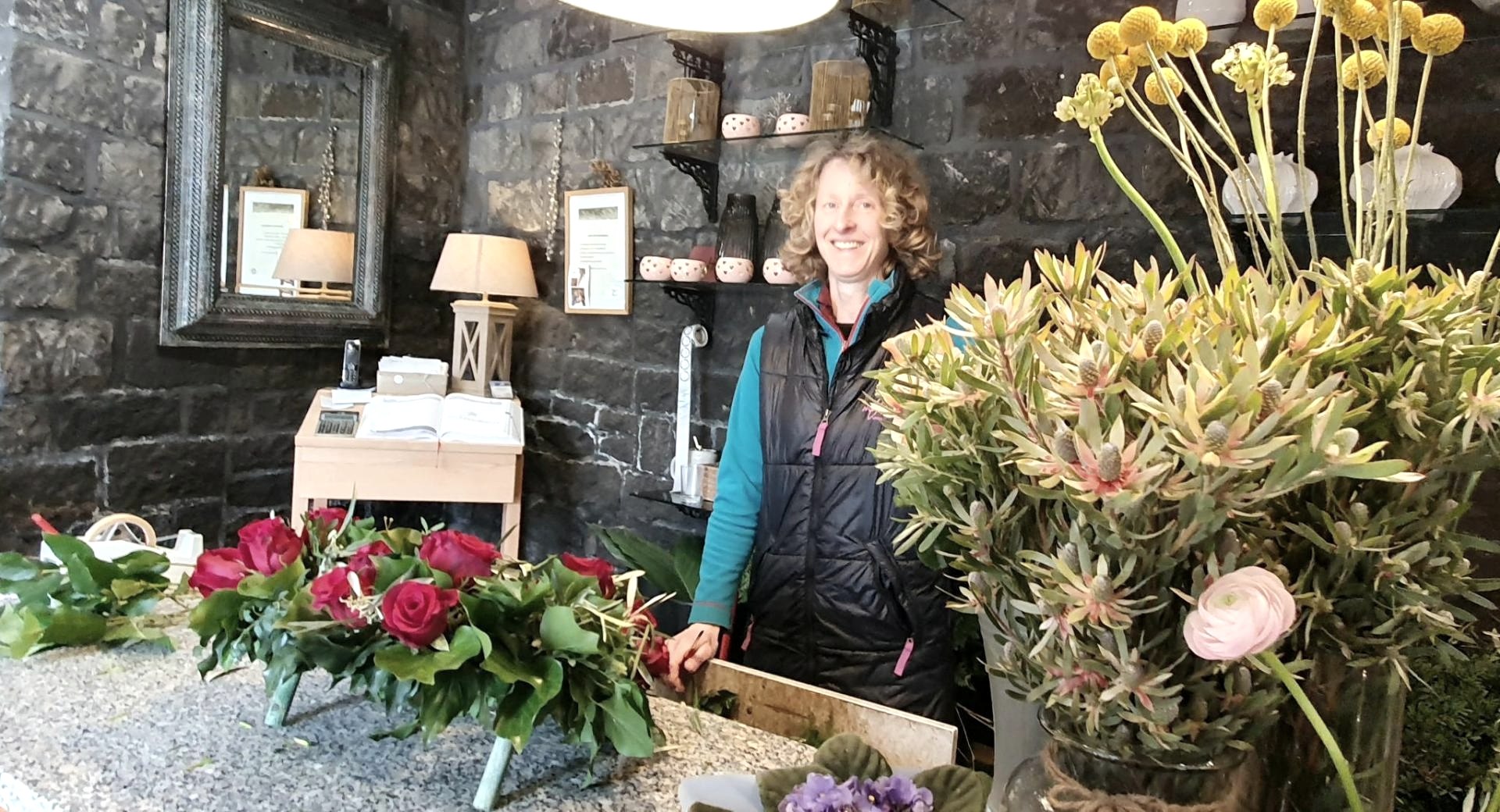 Wir sind ein Familienbetrieb mit 3 Angestellten. Wir bieten saisonabhängig regionale Produkte von Berufskollegen an, im Winter auch mal aus dem Ausland. Zusätzlich machen wir Hochzeitsfloristik, Trauerschmuck und sonstige Blumenarragements.
