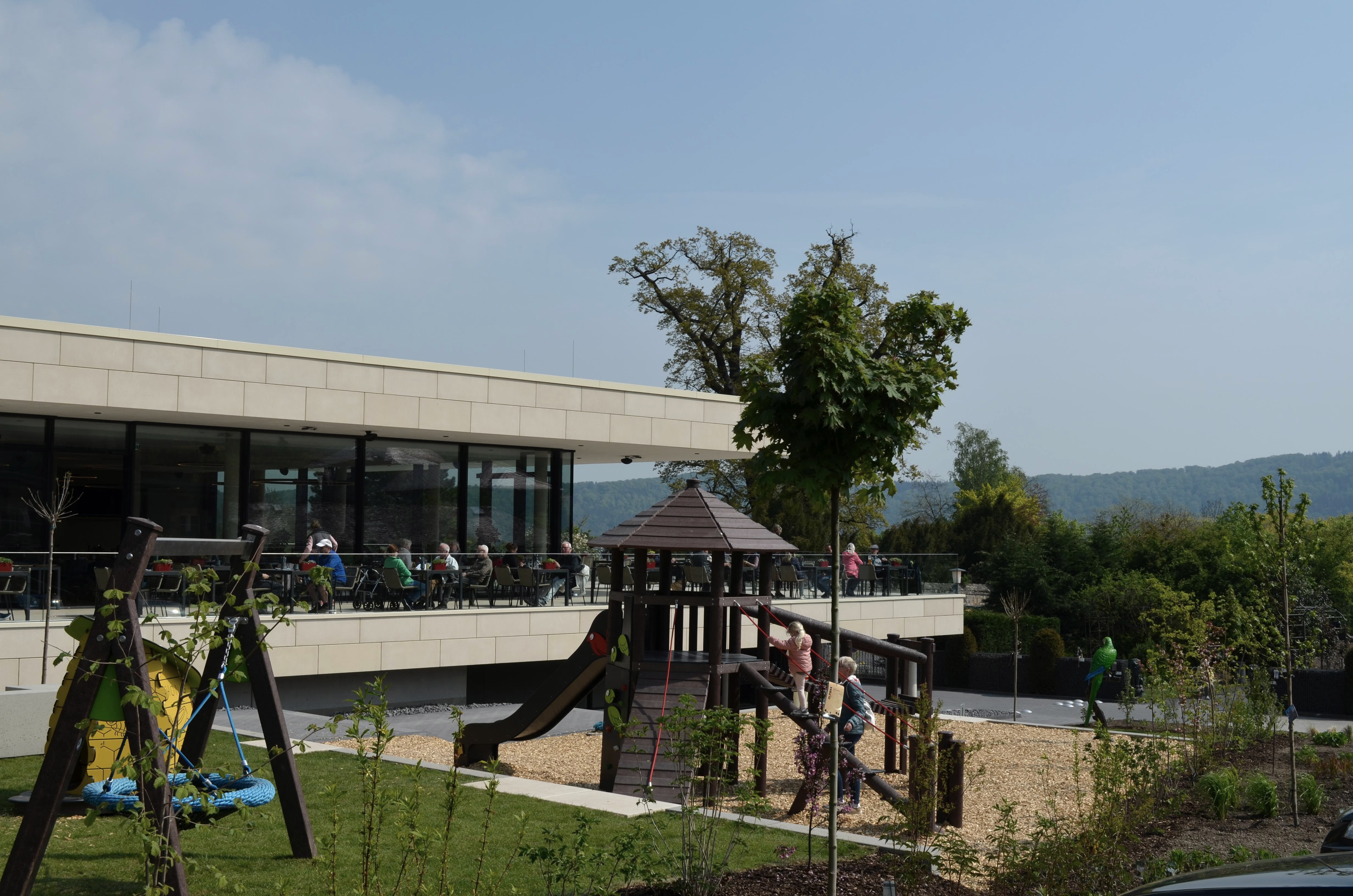 Na bijna twee jaar bouwen is het nieuwe kloosterrestaurant Maria Laach sinds het voorjaar van 2022 open. Het kloosterrestaurant bevindt zich tussen het Seehotel en de kloosterkwekerij. Met de bouw van het restaurant heeft de benedictijnenabdij zich letterlijk verder opengesteld voor bezoekers: Een deel van de Klausur-muur werd verwijderd om een drempelloze toegang tot de crèche en het restaurant mogelijk te maken, en het biedt ook een volledig nieuw zicht op de abdijkerk. Rond het nieuwe kloosterrestaurant nodigt een nieuwe pleinsituatie bezoekers uit om te blijven hangen. Het aanbod wordt gecompleteerd door een speeltuin voor kleine en grotere kinderen. De speeltuin is direct zichtbaar vanaf het ruime terras van het kloosterrestaurant.