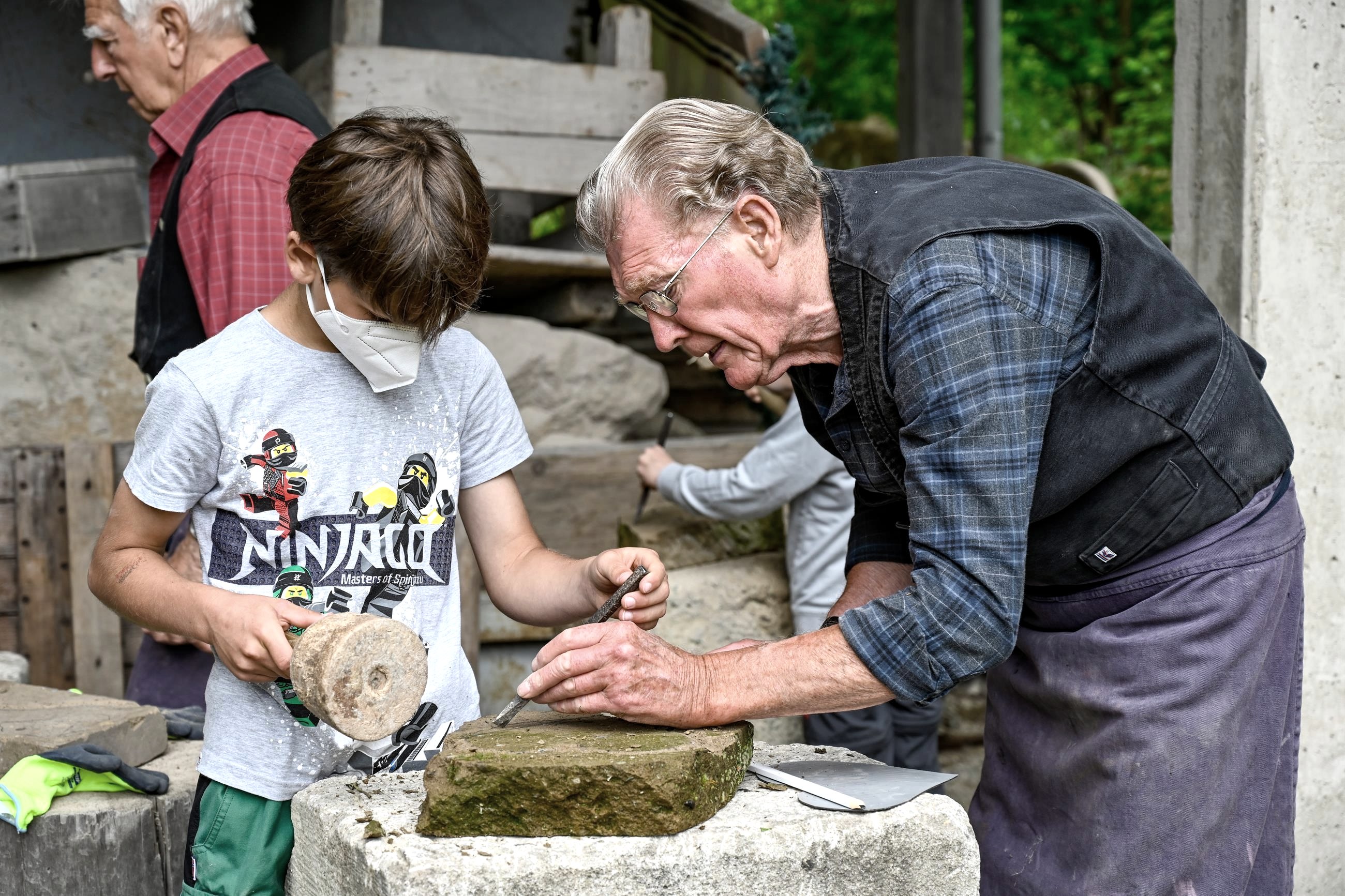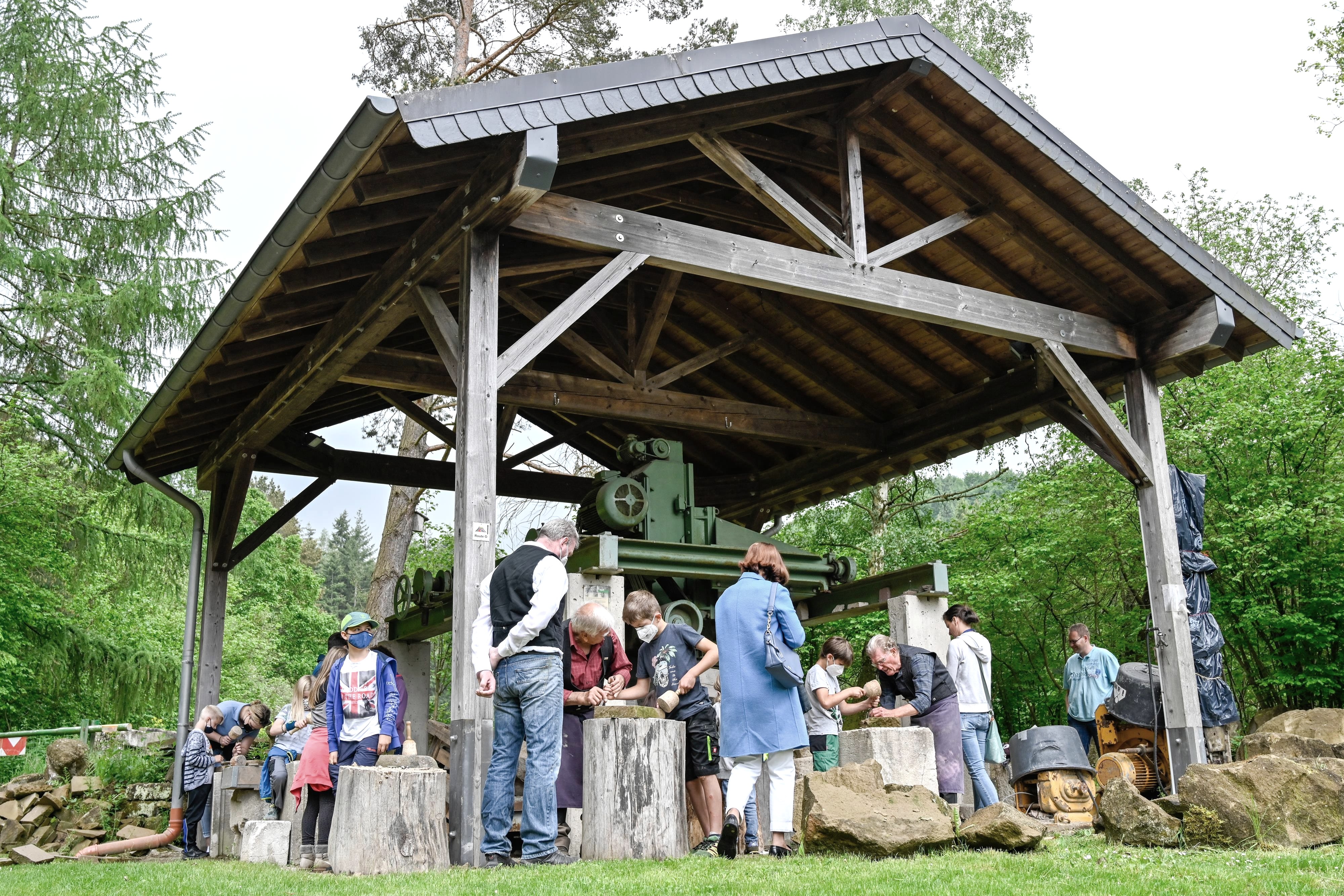 In het tufsteencentrum legt een ervaren steenhouwer de kinderen uit hoe ze met tufsteen moeten werken en welk gereedschap ze daarvoor nodig hebben. Daarna kunnen de "jonge steenhouwers" zelf aan de slag.