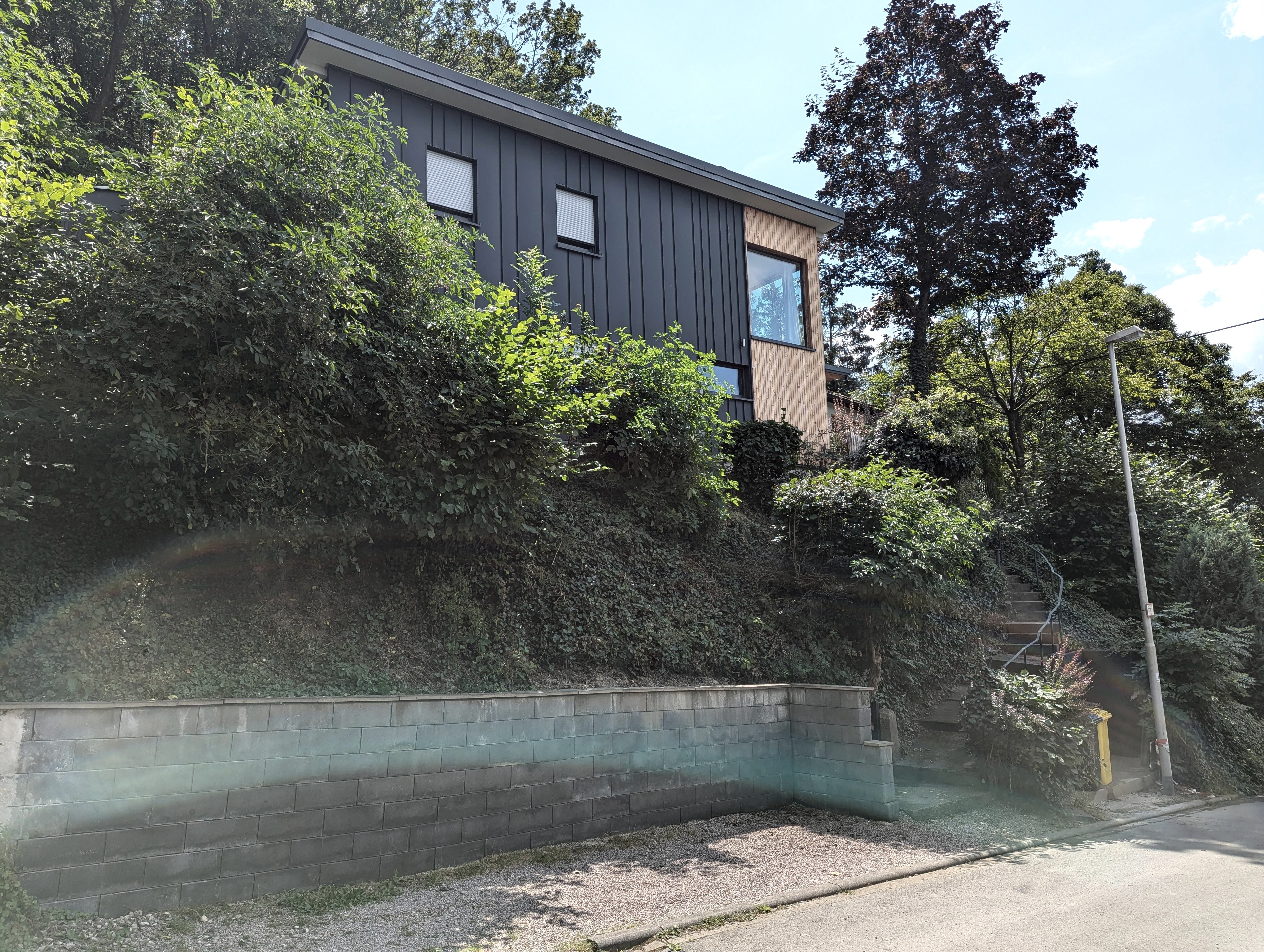 Ihr Auto parken Sie auf unserem Parkplatz vor dem Haus. Hier befindet sich auch ein abschließbares Fahrradhäuschen mit Ladestation und davor die Mülltonnen.
