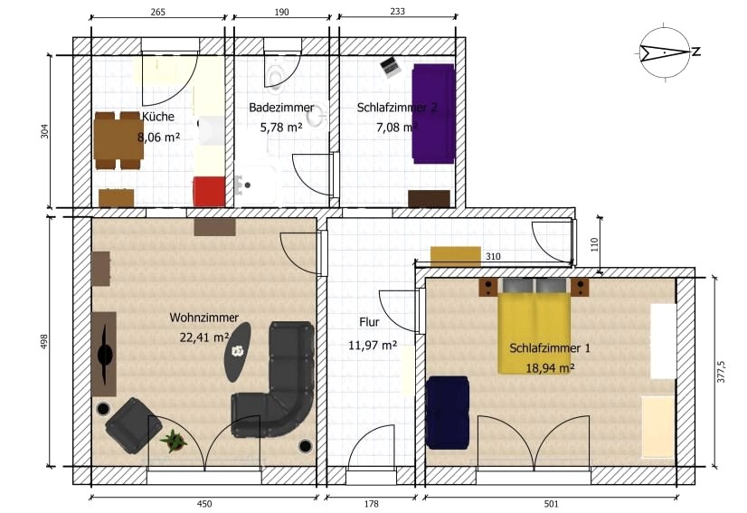 Es empfängt sie ein geräumiger ansehnlicher Flur. Im großen Wohnzimmer lässt es sich gemütlich relaxen. Das Schlafzimmer ist geräumig. Ein zweites Schlafzimmer liegt im Durchgangsbereich zum Bad kann aber mit einem Paravent sichtgeschützt werden. Ein zusätzliches Schlafsofa für 2 Personen ist im Wohnzimmer. Die Küche besticht mit moderner und kompletter Ausstattung. Induktionsherd, Backofen, Kühlschrank und Tiefkühlfach. Das Badezimmer hat eine sehr flache Dusche mit Gleitschutz und Klappsitz. Duschabtrennung in Echtglas. Die Waschtischanlage besteht aus einem Waschtisch 80cm, geräumigen Badmöbeln und Spiegelschrank. Ein Handtuchwärmekörper trägt zu Behaglichkeit bei. Handtücher und Bettwäsche werden gestellt. Die Wohnung bietet einen Privatparkplatz an der Unterkunft und kostenfreies WLAN. Wir wünschen ihnen einen angenehmen Aufenthalt.