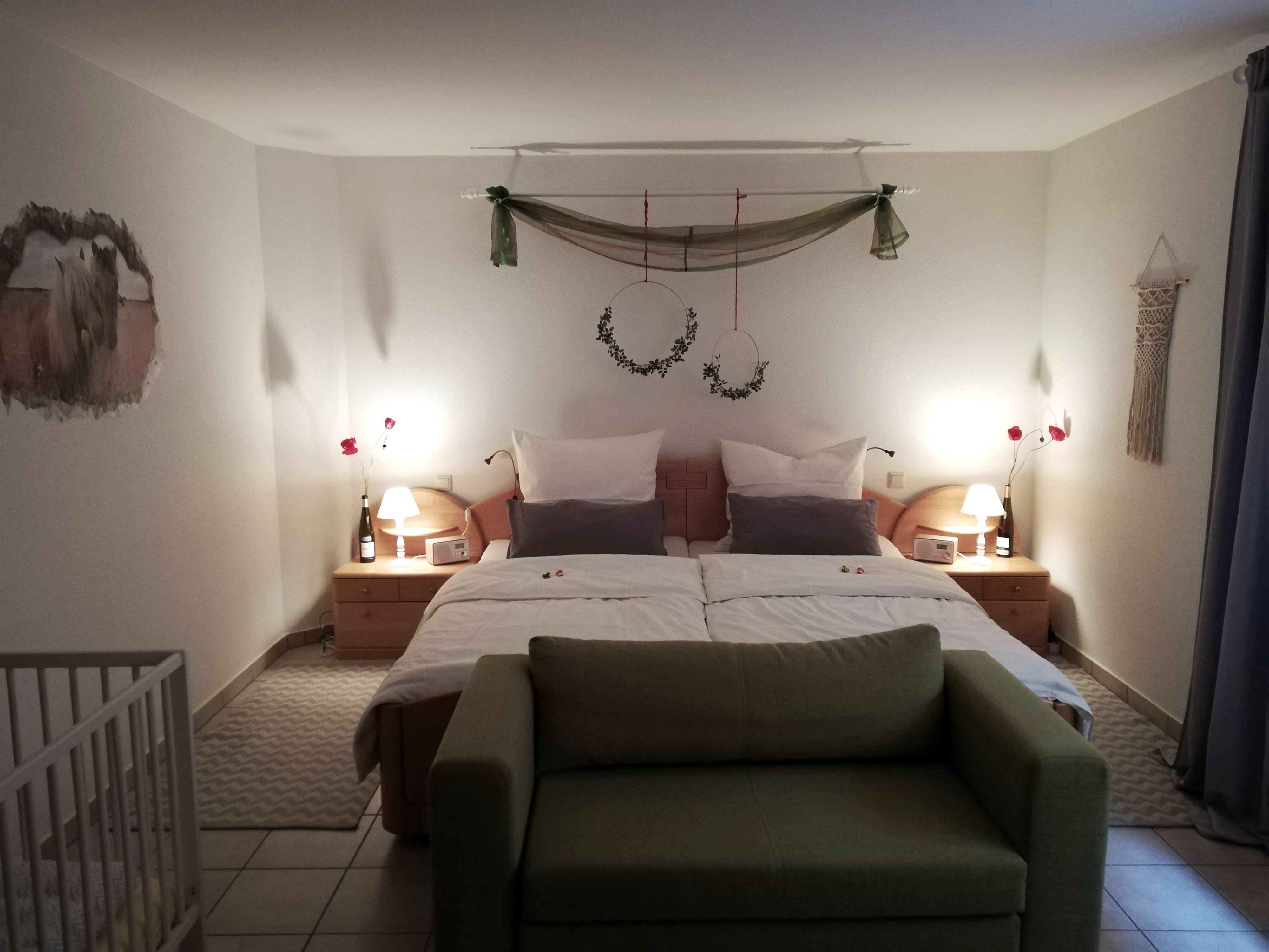 Für eine 4. und 5. Person besteht eine Übernachtungsmöglichkeit auf jeweils einer Schlafcouch im Wohnzimmer sowie im Doppelzimmer.