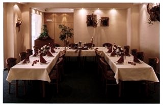 Rustikaler Burgkeller, Tagungsräume, Kegelbahn, Bar, Bus- und PKW-Parkplatz.