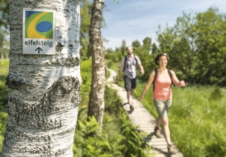 Der Wanderweg Eifelsteig führt in 15 Etappen auf einer Länge von 313 Kilometern durch die Eifel, von Aachen bis Trier.
