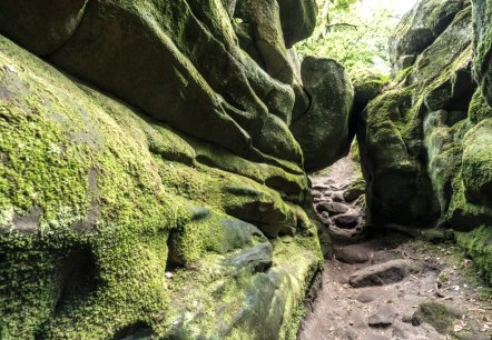 Mitten durchs Erdreich! Der Wanderweg Felsenweg 6 führt durch die bizarren Felsen des Ferschweiler Plateaus und der Teufelsschlucht. Auf etwa 17 km geht es durch Felsschluchten, vorbei an den Irreler Wasserfällen, an einen Felsenweiher und auf einen tollen Aussichtspunkt…
