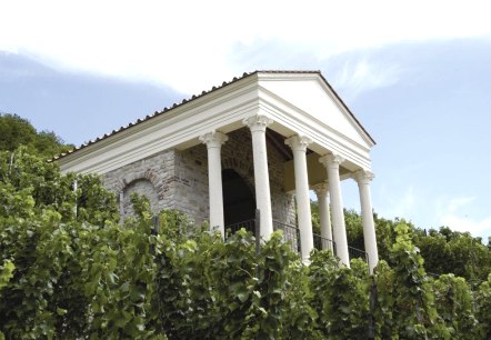 Der kleine römische Tempel liegt inmitten der Weinberge bei Igel-Liersberg. Das römische Denkmal befindet sich in herrlicher Lage mit wunderschöner Aussicht auf die Mosel.